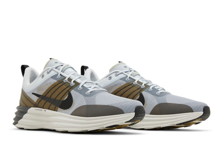 Nike Lunar Roam "Pure Platinum" привносит акценты земляных тонов в беговые кроссовки, созданные с использованием амортизации Lunar - легкого вспененного материала, который компания Nike впервые представила в 2008 году. Промежуточная подошва с завышенной высотой стопы поддерживается прочными резиновыми подушечками. Верхняя часть выполнена из светло-серой сетки с тросами Magwire, обеспечивающими легкую поддержку в средней части стопы и пятки. Они дополнены синтетическими накладками Desert Moss. Стельки на пятке украшены светоотражающими деталями для улучшения видимости в условиях недостаточной освещенности.