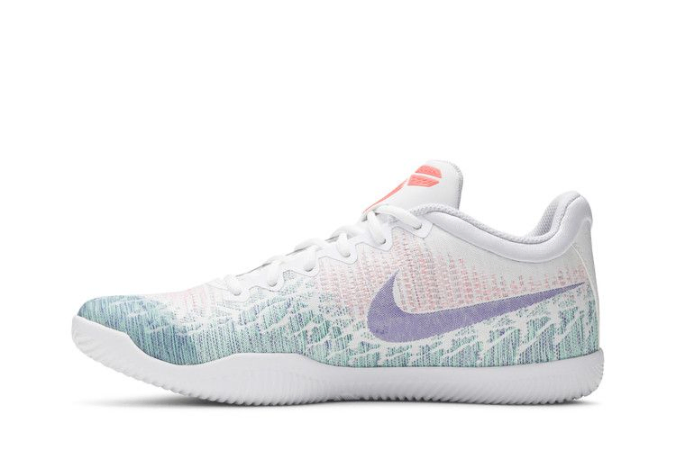 Модель Mamba Rage от Nike поддерживает наследие Коби Брайанта в НБА с помощью низких кроссовок с акцентами из тила, фиолетового и яркого манго в дизайне Flyweave. Черный узор появляется рядом с белой промежуточной подошвой Lunarlon. Низкий верх баскетбольных кроссовок обеспечивает плотную поддержку передней части стопы, а подошва с микронастройками предназначена для сцепления с поверхностью площадки.