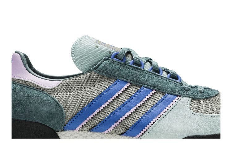 Модель adidas Marathon TR сшита из замши премиум-класса с пастельными зелеными оттенками, а на брендинге, люверсах и пятке использованы контрастные королевские и нежно-розовые оттенки. Дебютировавшая в 1979 году модель оснащена прочной подошвой для улучшения сцепления с бездорожьем.