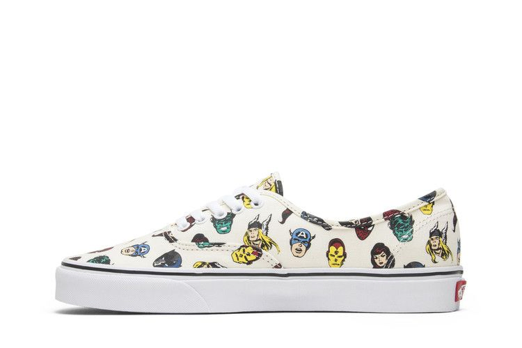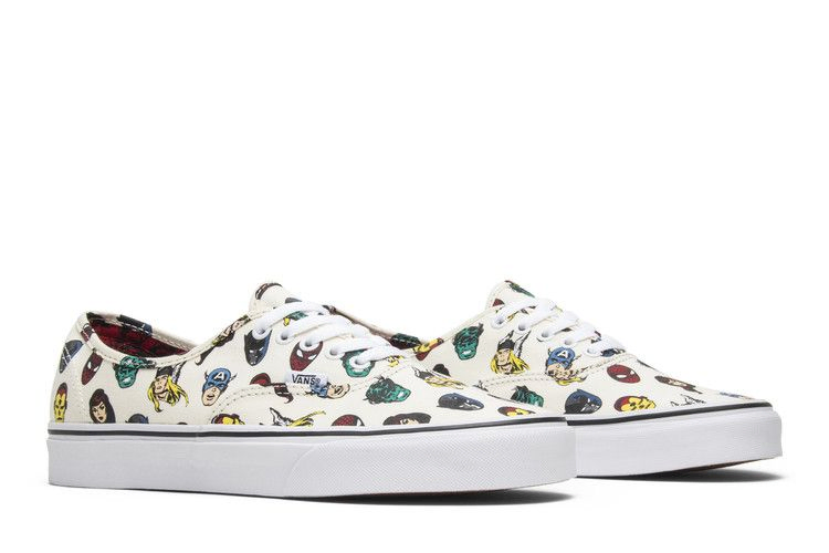 В июне 2018 года Vans и Marvel объединились, выпустив линейку обуви и одежды, вдохновленную вселенной Marvel. Модель Marvel x Authentic 'Marvel Heads' покрыта холщовым верхом Off-White с графическим изображением голов Мстителей. Низкие кеды с металлическими люверсами, белой резиновой подошвой, подошвой из вафельной резины и совместным брендингом Marvel и Vans на красной стельке.