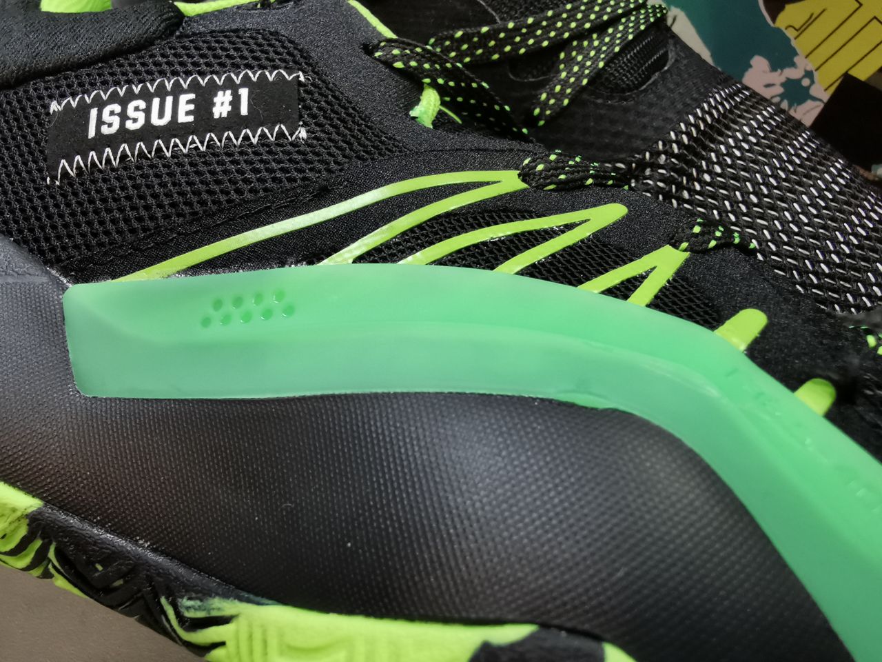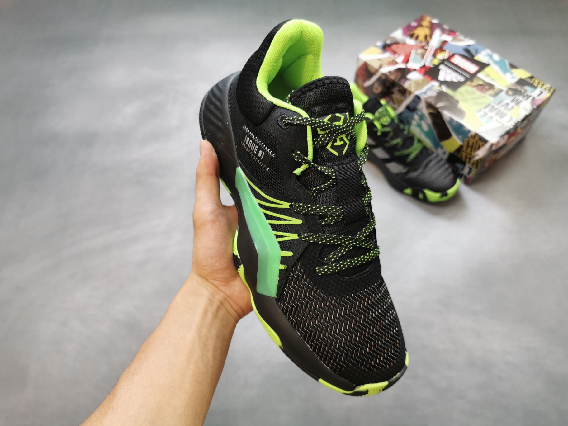 Отличаясь из большинства баскетбольных кроссовок NBA благодаря спортивным смелым деталям в стиле комиксов, баскетбольная звезда Donovan Mitchell создал коллекцию кроссовок совместно с adidas летом 2019 года. Кивнув на любовь Митчелла к комиксам и его прозвище «Spida», вдохновленное Spiderman Marvel x D.O.N. Issue #1 релизнуты в августе 2019: верхняя сетка и амортизатор Bounce, подчеркнутые перепонками.- Цвета: Core Black/Hi-Res Green/Hi-Res Yellow