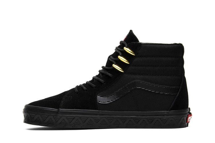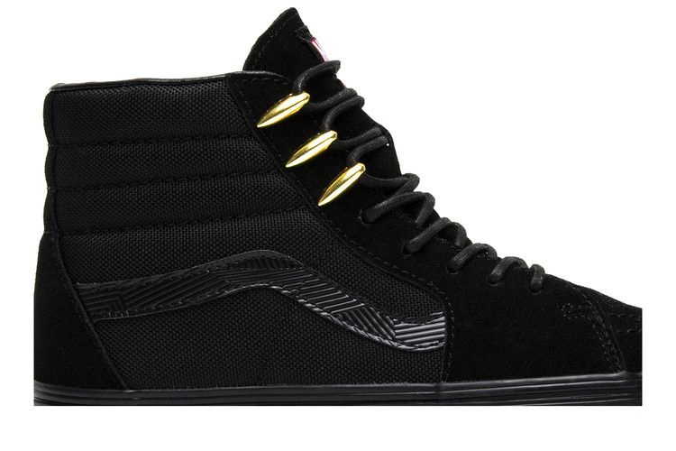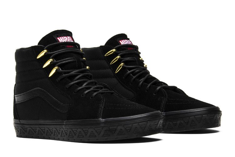 Компания Vans совместно с Marvel выпустила коллекцию, посвященную нескольким самым известным комиксам компании. Эта модель Sk8-HI посвящена Черной Пантере и выполнена в цветовой палитре Triple Black, а верхняя часть выполнена из замши и баллистической сетки. Золотые люверсы в верхней части напоминают о шипованном ожерелье персонажа, а на язычке красуется красный брендинг Marvel. Тональная кожаная полоска jazz-stripe украшает задник, а на межподошве выгравирован уникальный v-образный дизайн.