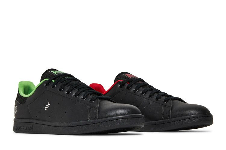 Marvel x adidas Stan Smith 'Hulk & Thor' отдает дань уважения двум самым могучим Мстителям. Низкие кроссовки выполнены из черной искусственной кожи, по меньшей мере на 50 процентов состоящей из вторсырья. Правая часть кроссовка украшена зелеными акцентами и изображением Халка на язычке. С боковой стороны на четвертьпанели нанесена надпись "Hulk", а пятку украшает рельефный рисунок кулака. Левый ботинок посвящен богу грома: красные акценты, ярлык Thor на языке, имя героя и его фирменный молот на боковой стороне. Оба кроссовка стоят на одинаковой черной резиновой подошве.