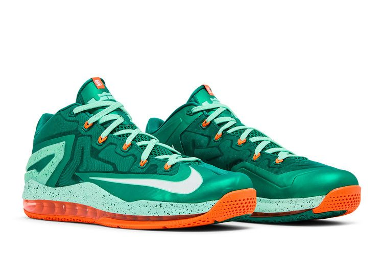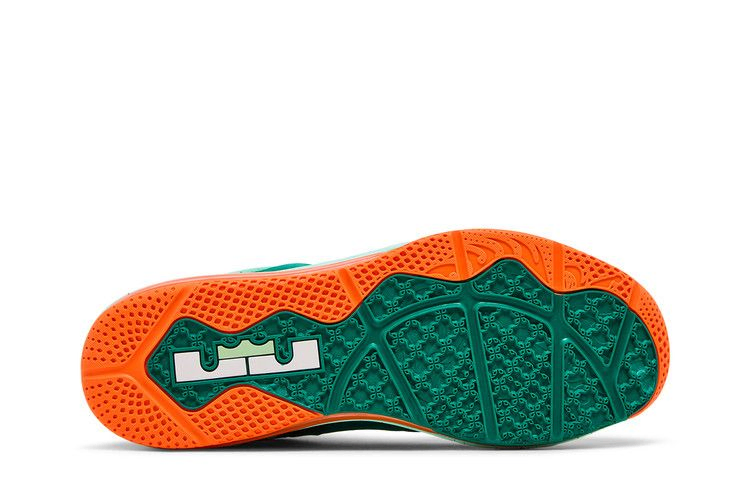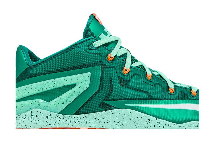 Возможно, Леброн Джеймс уже объявил о своем возвращении в Кливленд, когда Nike выпустил модель Max LeBron 11 Low в цвете Mystic Green, но дизайн низких кроссовок явно вдохновлен городом Майами. Зеленая отделка легкого и дышащего сетчатого верха кроссовок контрастирует с мятно-зеленой промежуточной подошвой, оранжевыми тросами Flywire и оранжевыми блоками Max Air и резиновой подошвой.