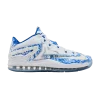 Модель Max LeBron 11 Low "China" отдает дань уважения влиянию Леброна Джеймса в Китае, представляя эксклюзивный дизайн, повторяющий вид традиционных фарфоровых ваз этой страны. В бело-голубой цветовой палитре использованы мотивы тигра и дракона, а желтые акценты украшают брендинг. Кроссовки дополнены видимым амортизатором Max Air по всей длине и имеют голубую подошву.