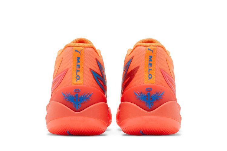 Модель PUMA MB.02 'Supernova' представляет вторую фирменную обувь ЛаМело Болла. Сетчатый верх, выполненный в огненно-оранжевом цвете, укреплен тональными накладками без швов и TPU-клипсой на пятке с фирменным логотипом крыльев Мело. Боковая полоса PUMA Formstrip украшает боковую сторону, а на противоположной стороне скрыта графика "RARE", выполненная контрастным синим шрифтом. Кроссовки опираются на промежуточную подошву NITRO от PUMA, изготовленную из пеноматериала EVA с компрессионным формованием для обеспечения отзывчивости и легкой амортизации. Вторая графика "RARE" украшает резиновую подошву с перьевым протектором.