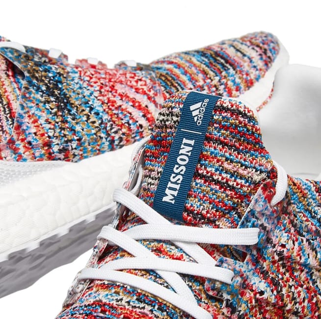 В апреле 2019 года Missoni и adidas представили трехкомпонентный набор UltraBoost Climа. Это издание выполнено в многоцветном Primeknit, структурированном асимметричной кружевной клеткой с тремя полосками и прошитой парусиновой чашечкой на пятке. Кобрендинг можно увидеть на этикетке с язычком. Отзывчивая мидсоль Boost и стабилизирующая резиновая подошва Continental Rubber делают кроссовки еще более спортивными.- Цвета: Cloud White/Shock Cyan/Active Red