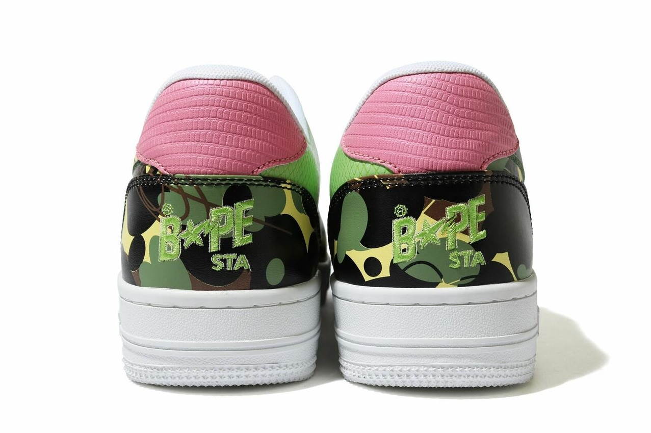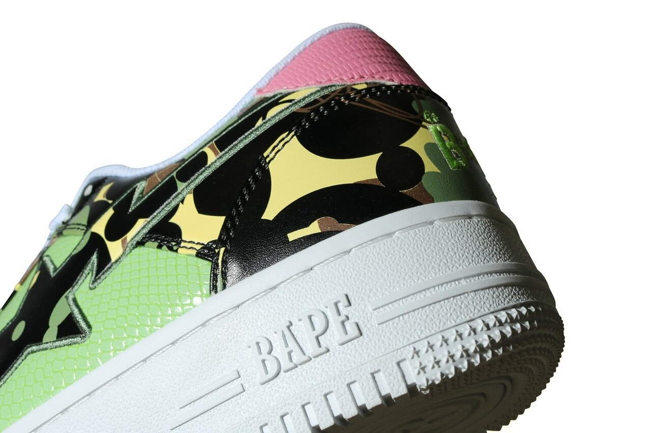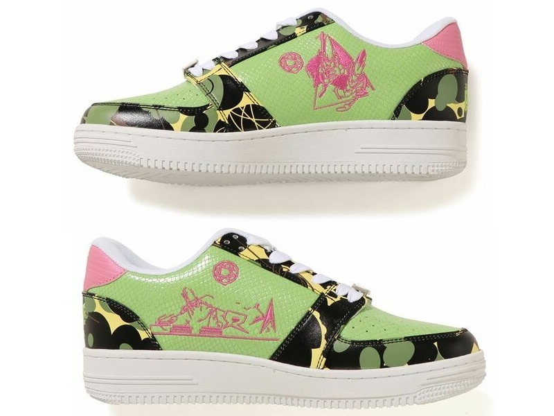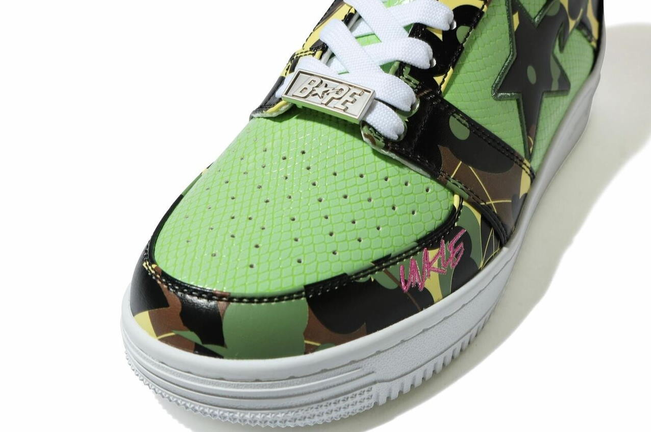 BAPE отдает дань уважения наследию Mo 'Wax и UNKLE, выпустив кроссовки под названием Mo' Wax x Unkle x A Bathing Ape Bape Bapesta M2 Low Original Headz. Камуфляжные кроссовки с верхом из лакированной кожи; лакированная звезда-логотип по бокам; модель украшена вставками из глянцевой эмали для придания яркости. Белая резиновая подошва завершает дизайн.