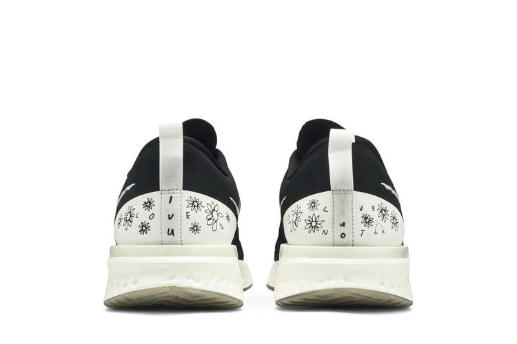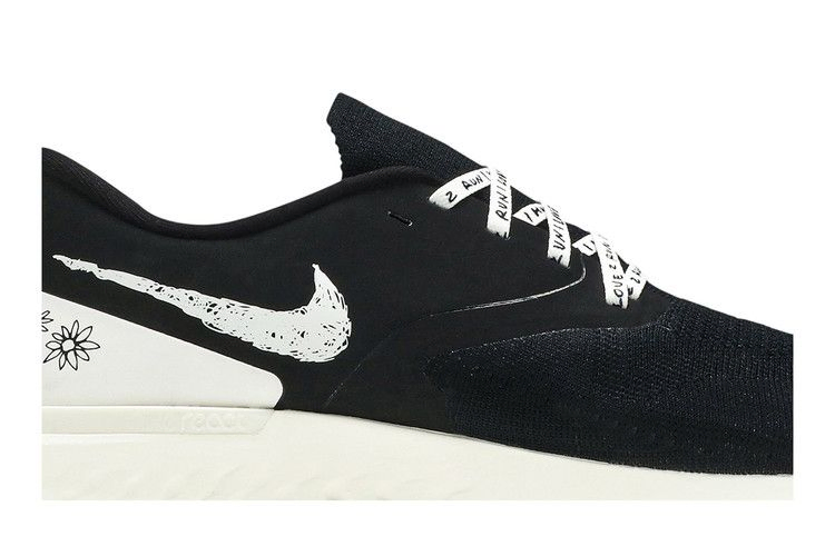 Кроссовки Nathan Bell x Nike Odyssey React Flyknit 2 'Doodles', выпущенные в феврале 2019 года, нашли юмор в отношениях художника с бегом. Верх из фликнита и синтетического текстиля регулируется с помощью плоских шнурков с надписями "I Love 2 Run" и "I Hate 2 Run". Наброски Swooshes и нарисованные вручную цветы оживляют стойку и внешнюю чашку пятки. Пеноматериал React и эргономичные желобки подошвы обеспечивают естественный, отзывчивый ход.