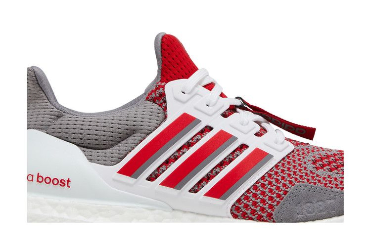 Модель NCAA x adidas UltraBoost 1.0 выполнена в фирменных цветах NC State Wolfpack. Верхняя часть из материала Primeknit, напоминающего носки, состоит из смеси 50/50 пластика Parley Ocean Plastic и переработанного полиэстера и имеет тканые нити серого и красного цветов. Последние оттенки представлены на фирменных полосках Three-Stripes, которые выделяются на фоне литого каркаса средней части стопы белого цвета. На замшевой накладке передней части стопы выбита надпись "1887", означающая год основания NC State, а сменные ремешки, прикрепленные к шнуркам, обеспечивают индивидуальную гордость за команду. Модель опирается на отзывчивую промежуточную подошву Boost, укрепленную подошвой Continental Rubber.