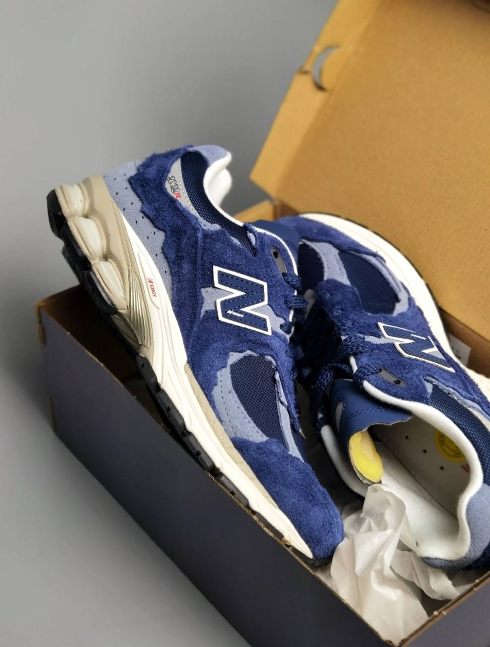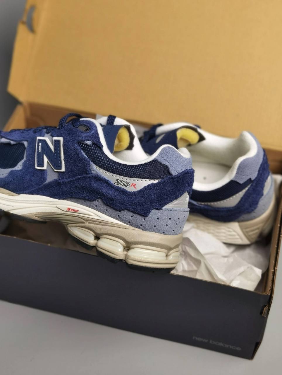Выпущенные как часть "Protection Pack", New Balance 2002R "Navy" демонстрируют уникальную эстетику, подчеркнутую темно-синим сетчатым верхом с необработанными краями накладок из тональной замши. Необработанный вид распространяется на язычок из вспененного материала, отмеченный нашивкой "New Balance Running". Синий кожаный логотип "N" украшает четверть панели. Кроссовки установлены на двухцветную промежуточную подошву ABZORB от New Balance, оснащенную подушечками ABZORB SBS в пятке для защиты от ударов и плавного хода.- Цвета: Navy/Arctic Grey/Light Arctic Grey