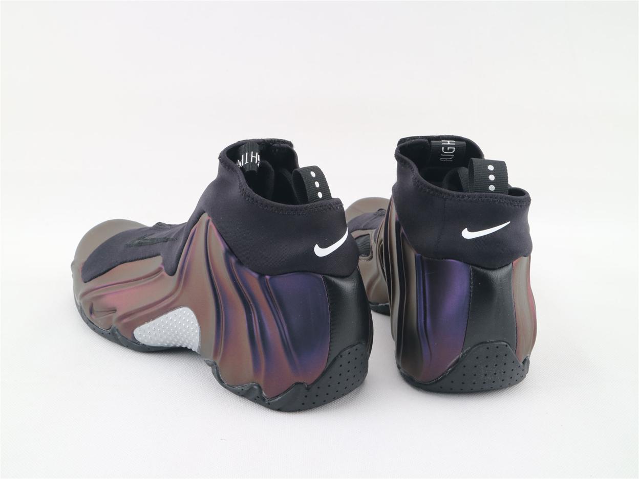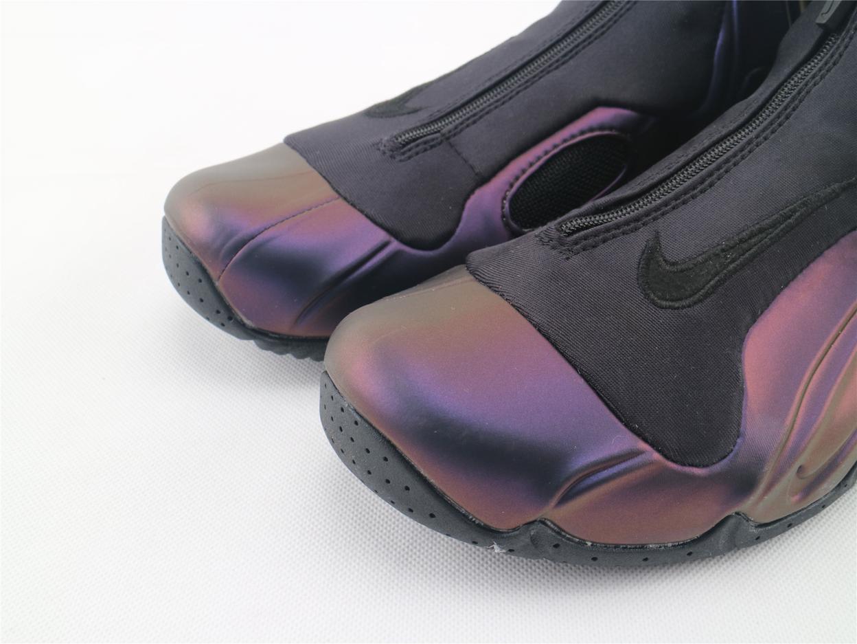 Модель Nike Air Flightposite Eggplant выпущена в 2018 года. Модель основана на оригинальном дизайне и цвете Foamposite Eggplant, из формованной оболочки сверху в паре с черным оттенком. Сформированные в форме носка, кроссовки оснащены застежкой-молнией, которая обеспечивает ощущение лучшего прилегания. Также модель имеет черную подошву и центральную пластину из углеродного волокна металлического оттенка, а сетчатые панели на средней стороне предназначены для лучшего воздушного потока.- Цвета: Black/Eggplant/Metallic Silver