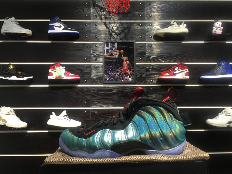 Заказать поиск кроссовок Nike Air Foamposite One PRM Gone Fishing с бесплатной доставкой. Nike Air Foamposite One PRM «Gone Fishing» вдохновлен фразой «ушел на рыбалку», принятой командой NBA TNT для команд, которые не выходят в плей-офф. Дизайн сочетает в себе черный верх с красными акцентами и переливающуюся чешуйчатую рыбью чешуйку из фоампозита. Другие детали включают сшитый скелет рыбы на пятке и рисунок вкладыша носка с надписью «ушел на рыбалку». В июне 2015 года были выпущены кроссовки Nike Air Foamposing One PRM «Gone Fishing» в сетчатой сумке.