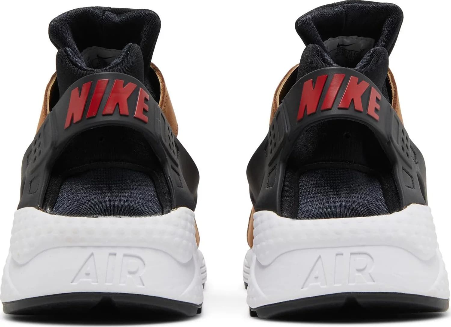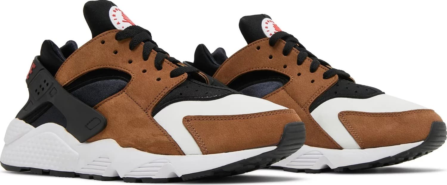Модель Nike Air Huarache LE "Bison" демонстрирует насыщенные земляные тона на беговых кроссовках, ставших образцом уличной моды. Верхняя часть состоит из черного неопренового текстиля с коричневыми накладками из нубука и белым кожаным носком. Акценты красного цвета добавлены на язычок Huarache и пяточный ремень с логотипом Nike. Кроссовки опираются на мягкую подошву Phylon с амортизацией Air. Под ногами располагается резиновая подошва с вафельным рисунком, напоминающая о беговом наследии Nike.