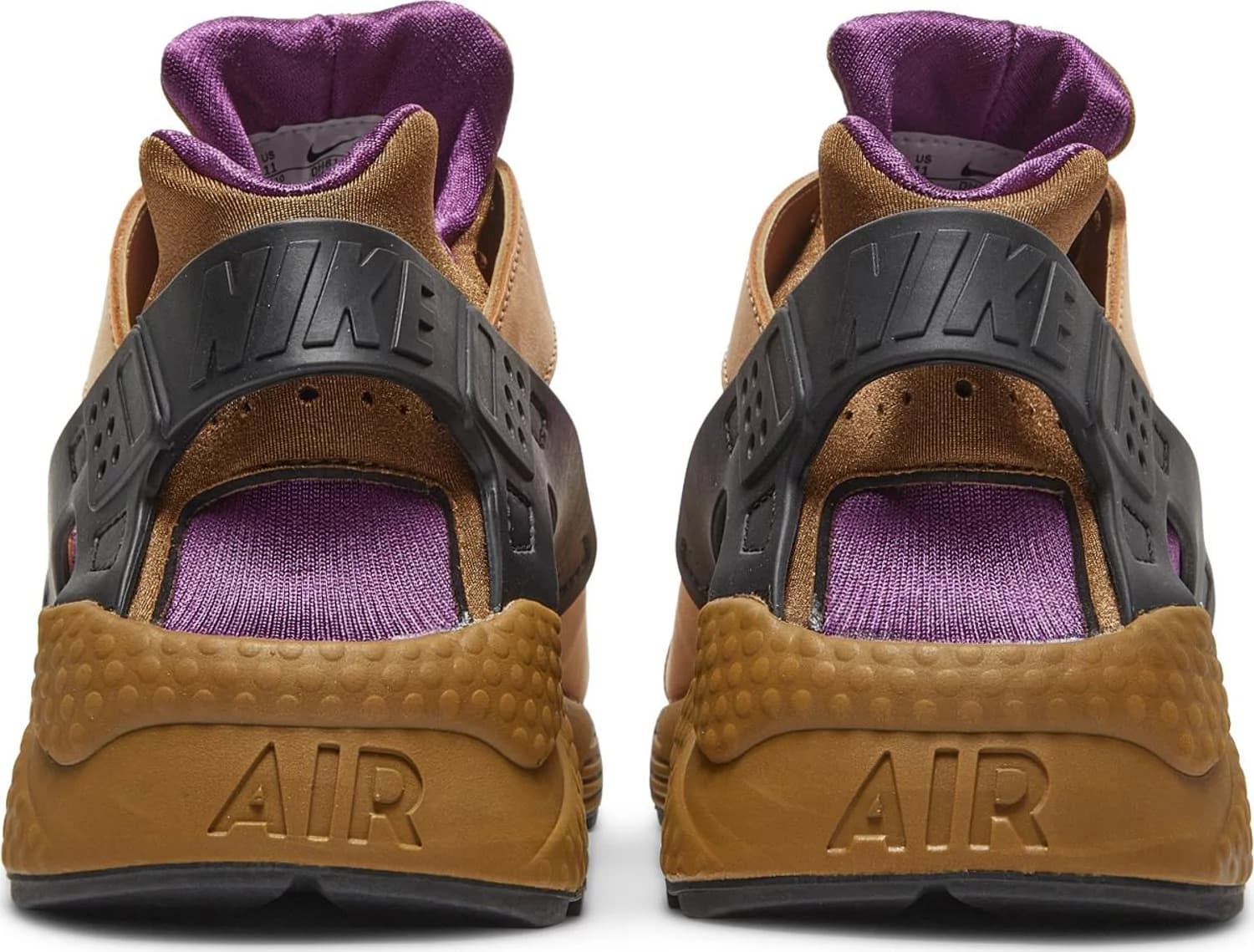 Модель Nike Air Huarache LE "Praline" перекрашивает революционный силуэт Тинкера Хэтфилда в нежные земляные тона, подчеркнутые бежевым нубуком вместо традиционных для кроссовок сетки и кожи. Фирменный неопреновый рукав выполнен в контрастных коричневых и фиолетовых оттенках, а каркас пятки из TPU имеет сплошную черную отделку. Ретро-кроссовки сидят на скульптурной подошве из пеноматериала, в которую встроена амортизация Nike Air для комфорта в течение всего дня.