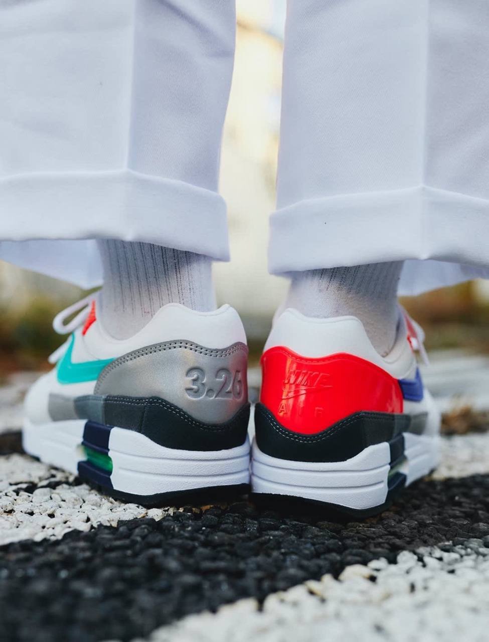 Nike Air Max 1 Evolution of Icons, представленный в рамках празднования Дня Air Max в 2021 году, отличается уникальным дизайном, который включает в себя знакомые детали из разных моделей Air Max. Кроссовки имеют верх из белой кожи с несоответствующими логотипами Swoosh, взятыми из «Neon» Air Max 95 и «Dusty Cactus» Air Max 93. Формованные люверсы взяты из 90-го, вышивка на носке отсылает к 98-му, а серый является еще одним намеком на 95. «3.26», также известное как Air Max Day, выгравировано на левой пятке, а график временной шкалы стельки изображает различные силуэты, составляющие гибридную композицию обуви.- Цвет: White/Teal-Silver-Black