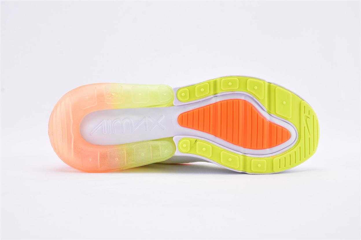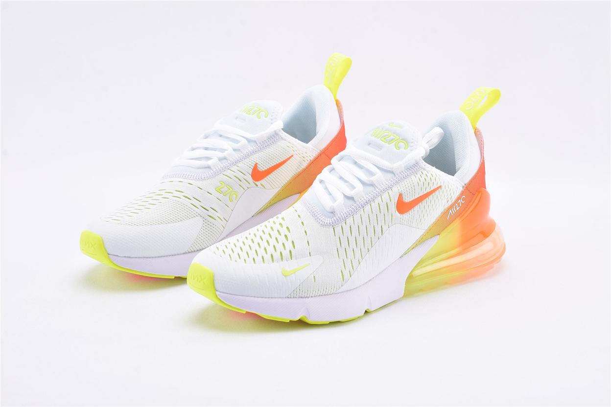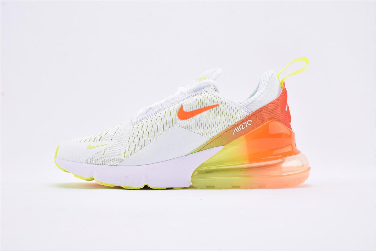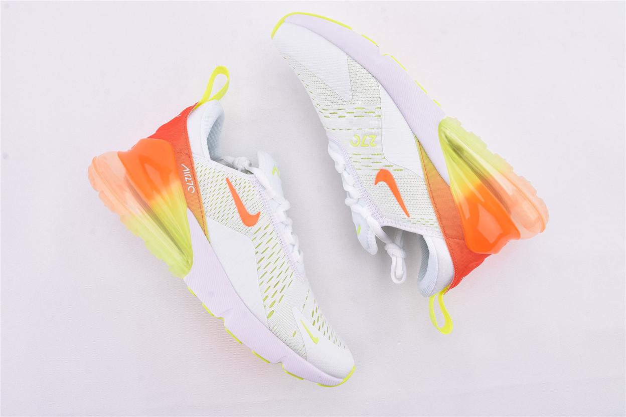 В 1977 году Марион Франклин Руди, тогда еще инженер по аэрокосмической технике, обратился к соучредителю Nike Филу Найту с революционной идеей. Он предложил использовать воздушные карманы на подошве обуви Nike. Эта идея навсегда изменила ход истории, положив начало революционным технологиям и эволюции дизайна на десятилетия вперед. Модель Nike Air Max 270 White Gradient обладает воздушной амортизацией в 270 градусов и представляет собой яркую палитру и спортивный силуэт. Белый цвет верха контрастирует с яркой градиентной подошвой от зеленого к оранжевому. В таком же оранжевом оттенке выполнен логотип бренда на боковой части.- Цвета: White/Lime-Orange