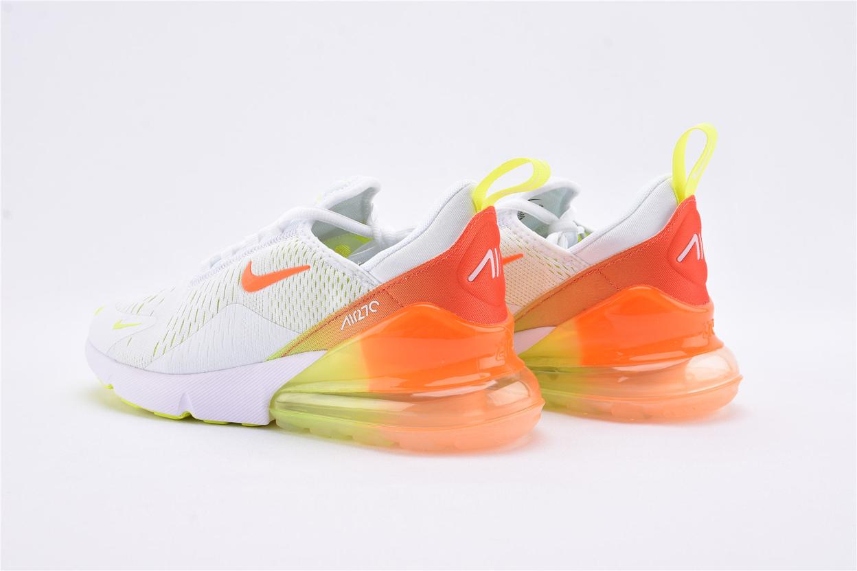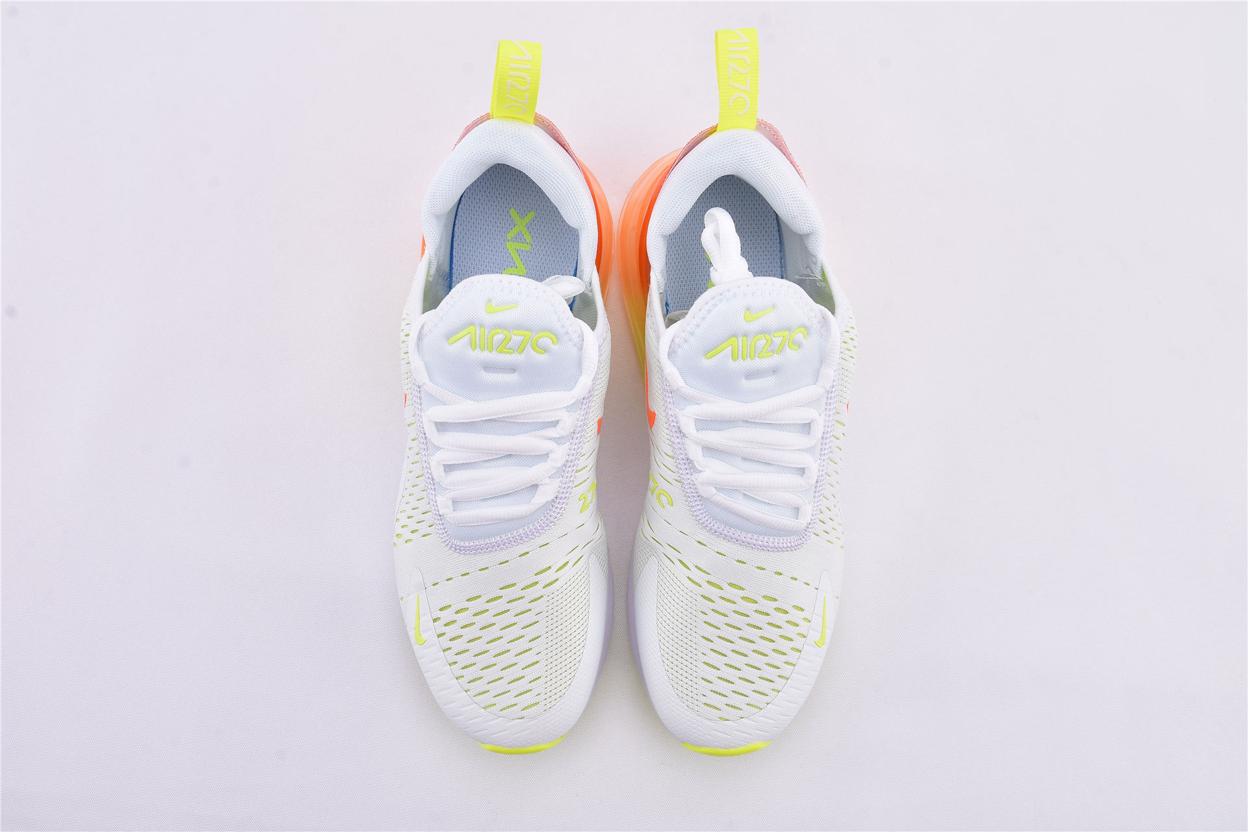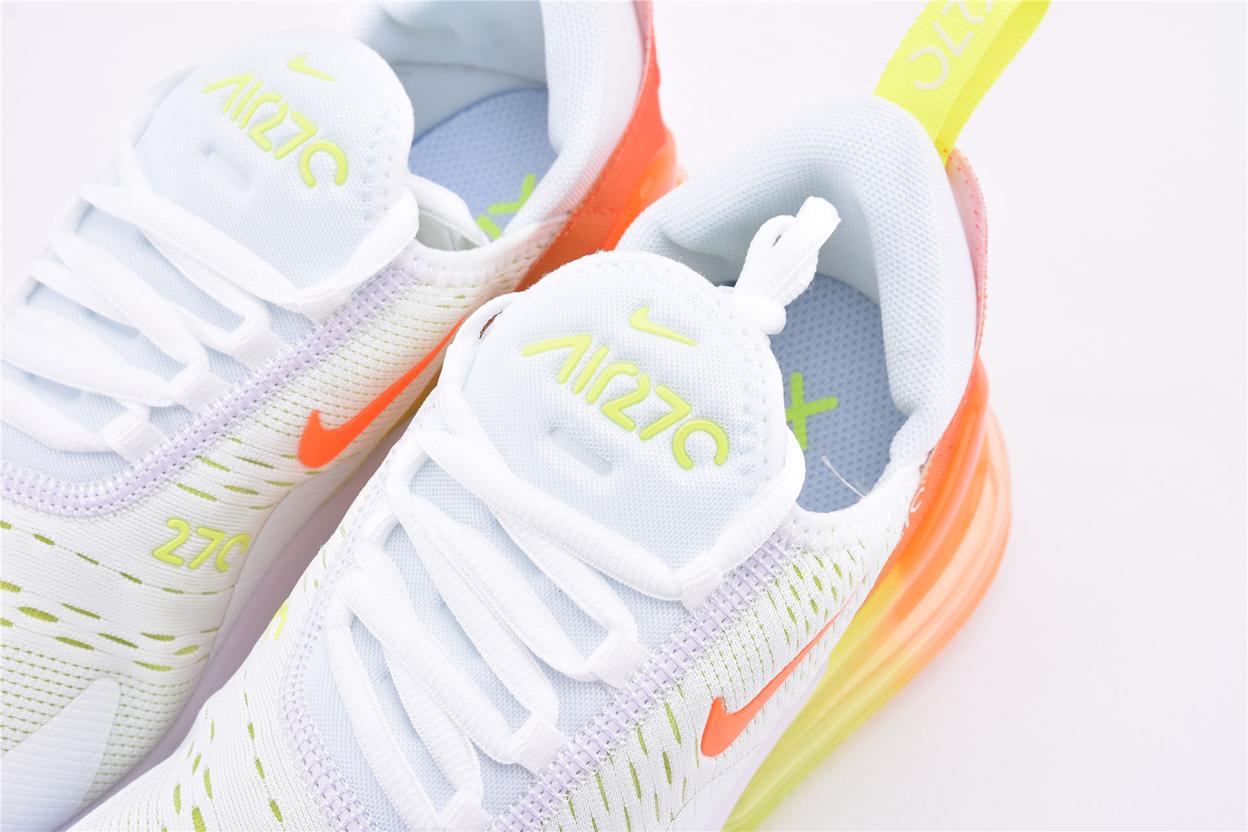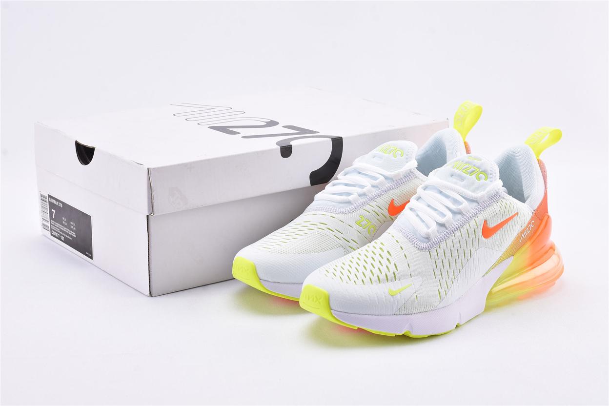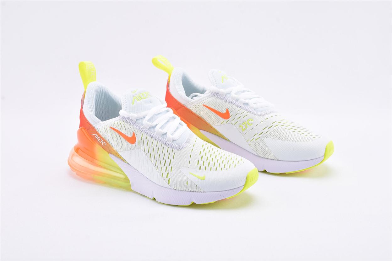 В 1977 году Марион Франклин Руди, тогда еще инженер по аэрокосмической технике, обратился к соучредителю Nike Филу Найту с революционной идеей. Он предложил использовать воздушные карманы на подошве обуви Nike. Эта идея навсегда изменила ход истории, положив начало революционным технологиям и эволюции дизайна на десятилетия вперед. Модель Nike Air Max 270 White Gradient обладает воздушной амортизацией в 270 градусов и представляет собой яркую палитру и спортивный силуэт. Белый цвет верха контрастирует с яркой градиентной подошвой от зеленого к оранжевому. В таком же оранжевом оттенке выполнен логотип бренда на боковой части.- Цвета: White/Lime-Orange