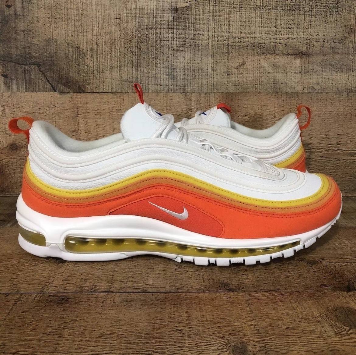 Модель Nike Air Max 97 Athletic Club сочетает в себе яркие детали и экологичную конструкцию. Верхняя часть состоит из оранжевой основы с белым Swoosh. Легкая амортизация обеспечивается благодаря блоку Max Air, расположенному по всей длине резиновой подошвы с вафельным рисунком.- Цвета: Rush Orange/Vivid Sulfur/Light Curry/White