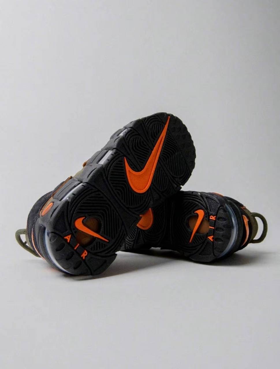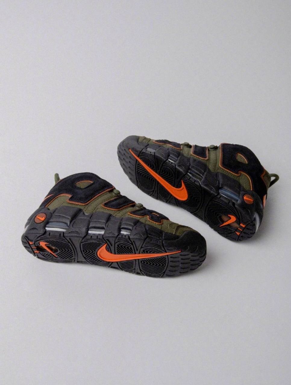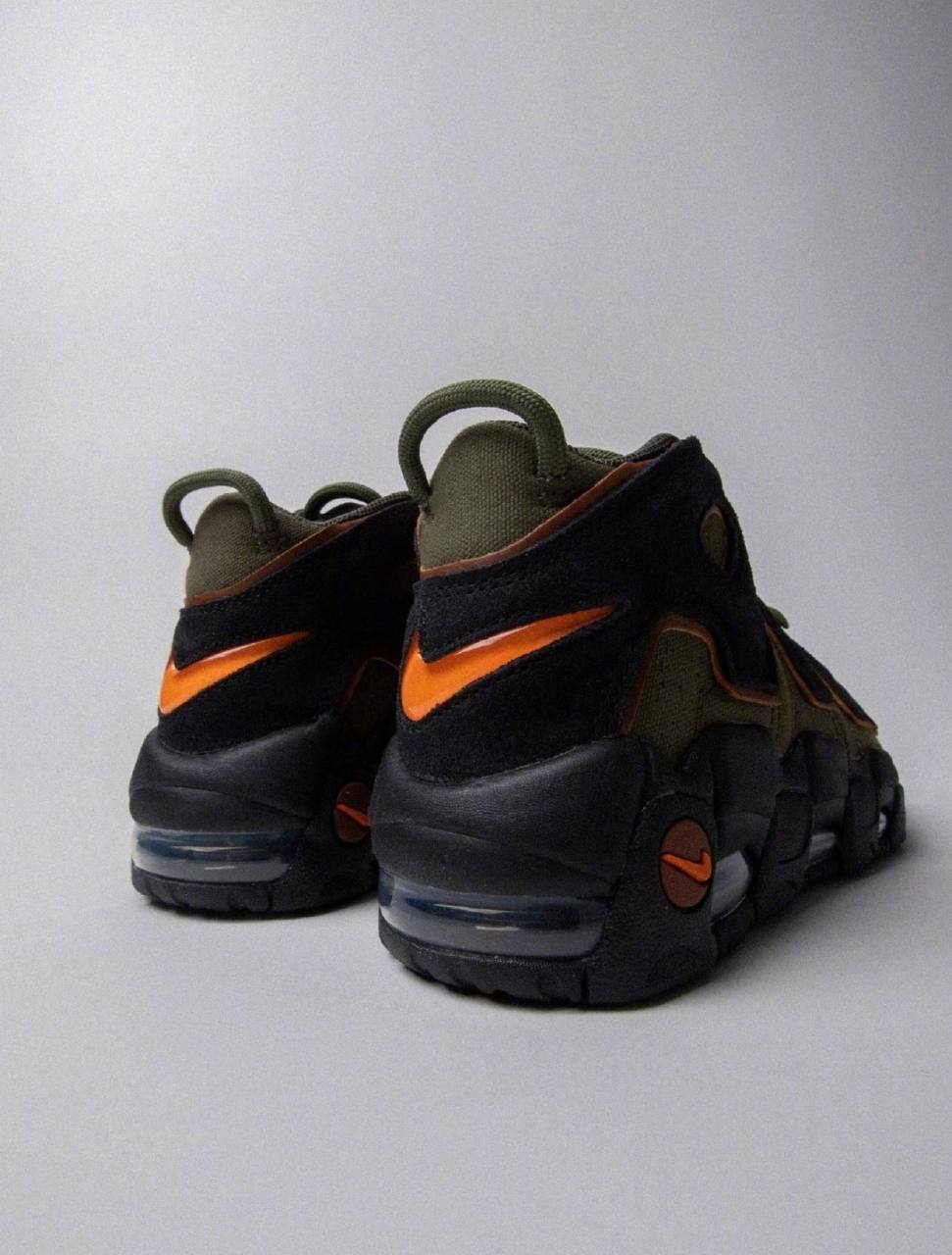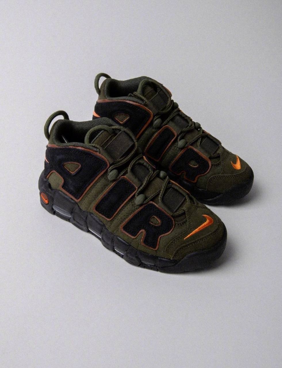 Nike Air More Uptempo 96 "Cargo Khaki" представляет осеннюю расцветку ретро-баскетбольных кроссовок, прославленных Скотти Пиппеном. Система быстрой шнуровки в сочетании с эластичными ремнями фиксирует оливково-зеленый холщовый верх. На каждой боковой панели доминирует крупный брендинг "AIR", черные замшевые буквы которого очерчены коричневой кожаной отделкой. На замшевой накладке передней части стопы вышит оранжевый Swoosh. Верхняя часть кроссовок опирается на полиуретановую подошву с видимой амортизацией Air-sole для мягкого приземления и плавного хода.- Цвета: Cargo Khaki/Pecan/Alpha Orange/Black