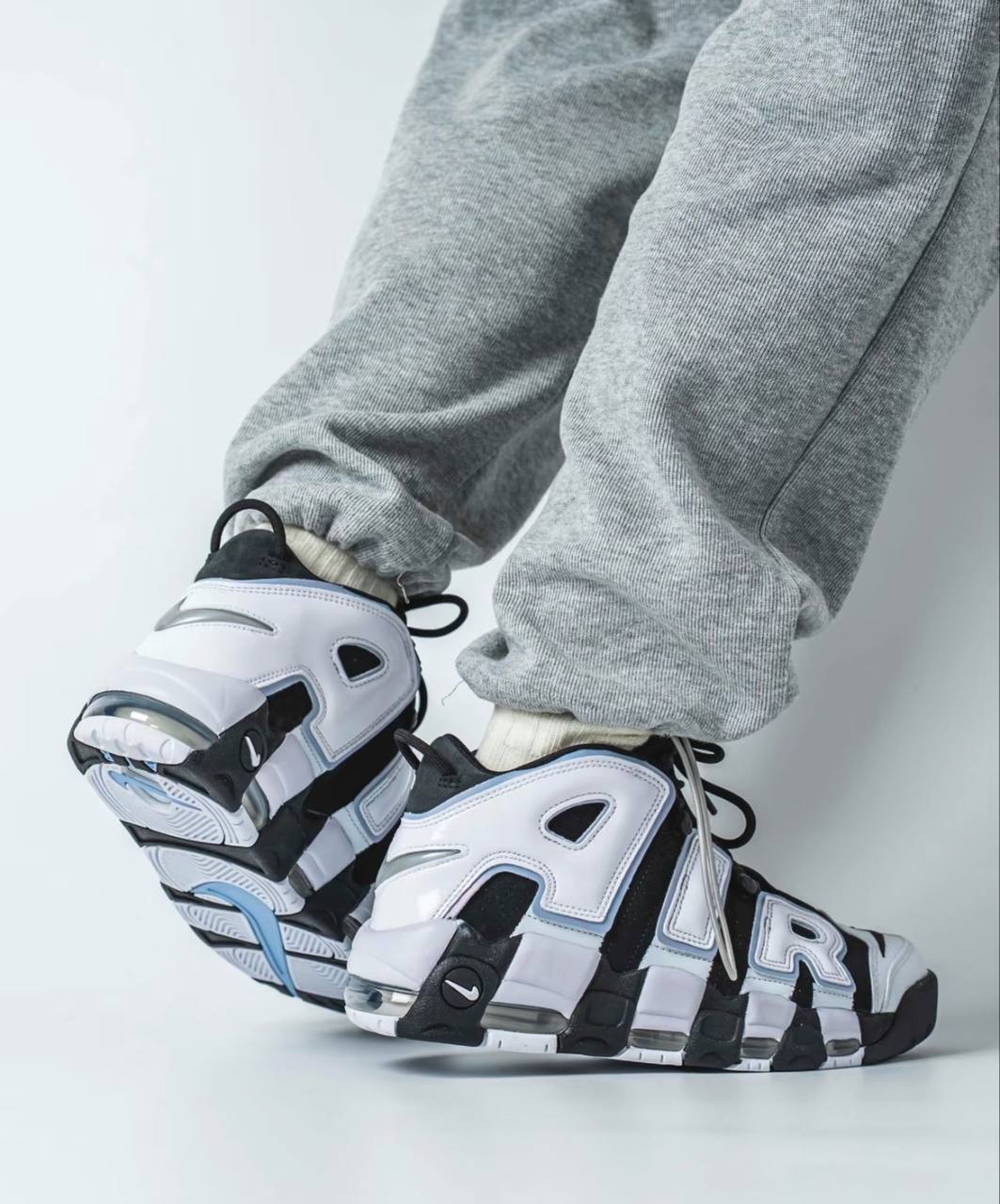 Модель Nike Air More Uptempo 'Cobalt Bliss' возрождает спортивную обувь 90-х годов, воплощая в себе смелую эстетику хардвуда той ушедшей эпохи. Громоздкая модель имеет верх из черного нубука, украшенный белой кожаной надписью "AIR", выделенной светло-голубой окантовкой. Система быстрой шнуровки в сочетании с эластичными ремнями обеспечивает надежную посадку, а язычок выполнен из мягкой сетки для лучшей воздухопроницаемости. Линии графического рисунка 'AIR' в стиле граффити переходят на промежуточную подошву, которая имеет видимую амортизацию Air-sole, обеспечивающую плавный ход.- Цвета: Black/White/Multi-Color/Cobalt Bliss