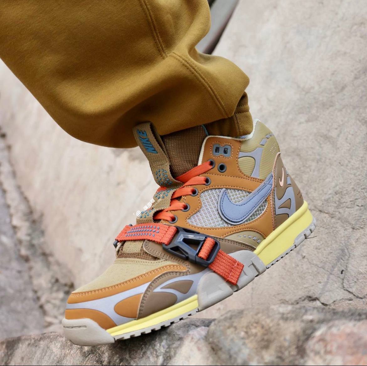 Модель Nike Air Trainer 1 Coriander" возвращает нам OG-цвет первых кроссовок, созданных Тинкером Хэтфилдом и выпущенных в 1987 году. Верхняя часть кроссовок выполнена из коричневой кожи с накладками из коричневой замши и регулируемым носочным ремешком контрастного красного цвета. На боковой четвертной панели красуется подобранный по цвету Swoosh, а на задней части пятки шрифтом вышита надпись "Nike Air". Кроссовки опираются на полиуретановую промежуточную подошву, которая дополнена амортизирующей подошвой Air и боковой вставкой для повышения устойчивости.- Цвета: Coriander/Ashen Slate/Wheat/Light Sienna
