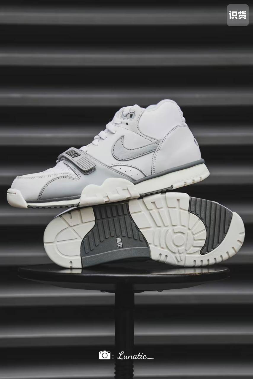 Nike Air Trainer 1 "Photon Dust" представляет собой приглушенную расцветку оригинальных кроссовок для тренировок, разработанных Тинкером Хэтфилдом и первоначально выпущенных в 1987 году. Нейтральные белые и серые тона использованы в кожаном верхе, который застегивается традиционной шнуровкой и регулируемым ремешком в носочной части. Перфорированные детали в области носка обеспечивают улучшенную воздухопроницаемость, а мягкий воротник среднего кроя обеспечивает поддерживающую посадку. Боковой задник стабилизирует белую полиуретановую промежуточную подошву с амортизацией Air-sole.- Цвета: Photon Dust/Smoke Grey/White/Light Smoke Grey