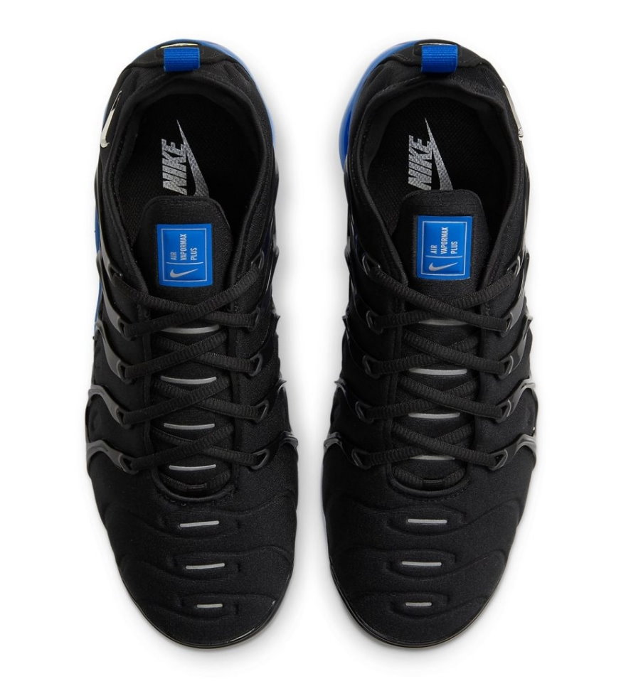 Модель Nike Air VaporMax Plus Orlando Magic отличается от своих предшественников Air Max Plus 1998 года и VaporMax 2017 года черным синтетическим верхом из неопрена с накладками из ТПУ для дополнительной амортизации. Нижняя часть кроссовок выполнена в голубой расцветке в честь команды НБА Orlando Magic. Логотип Vapor Max Plus на язычке и логотип VM на пятке завершают дизайн.