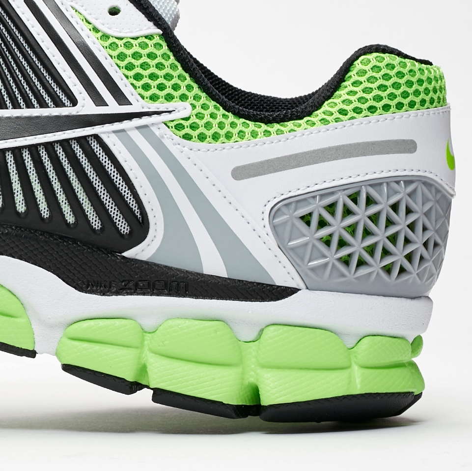 Выпущенные в апреле 2019 года, кроссовки Nike Air Zoom Vomero 5 SE SP Lime Green оснащены сеткой, кожаными накладками TecTuff и задником, что является отсылкой к оригиналу. Обувь украшена акцентами 3M и логотипом Nike Swoosh плюс контрастная полоска на язычке. Плюшевая мидсоль Cushlon и Zoom Air завершают дизайн.- Цвета: Electric Green/Black-Sail