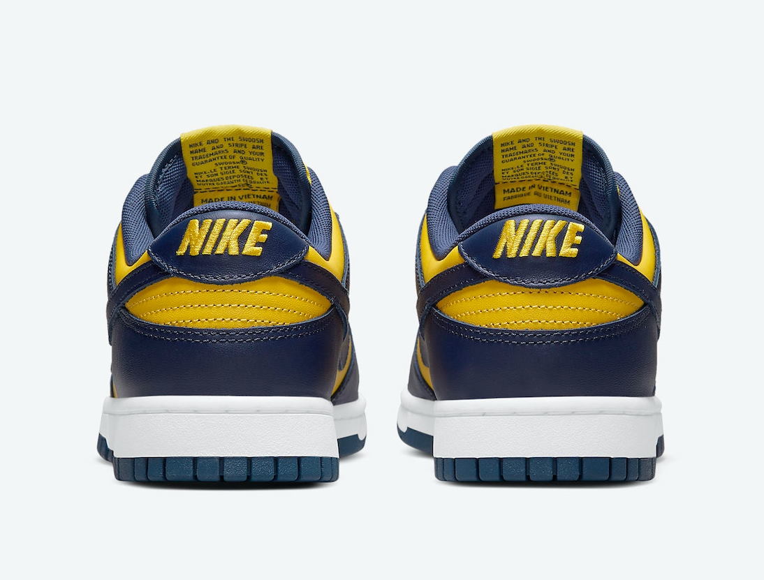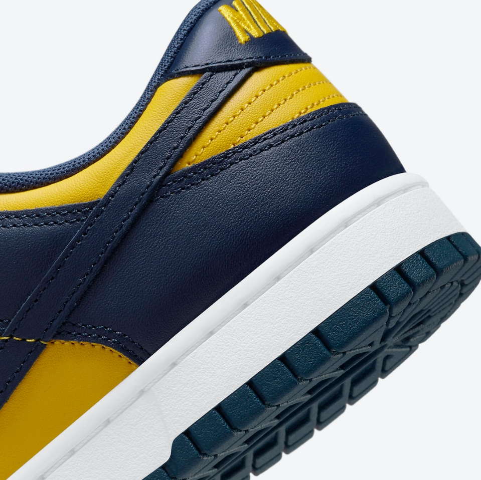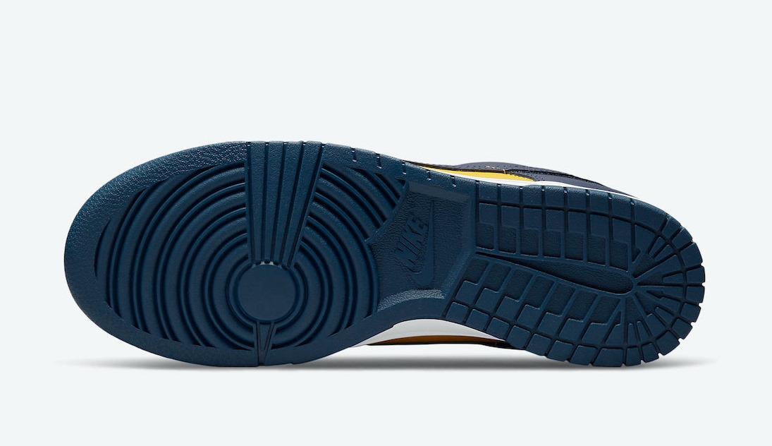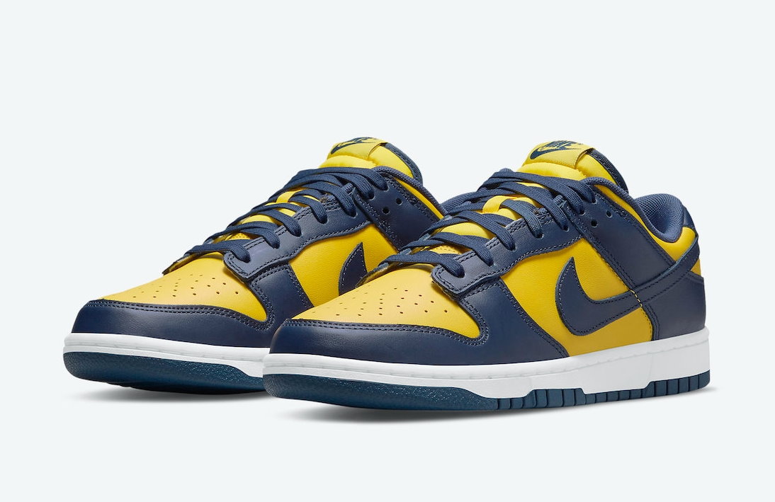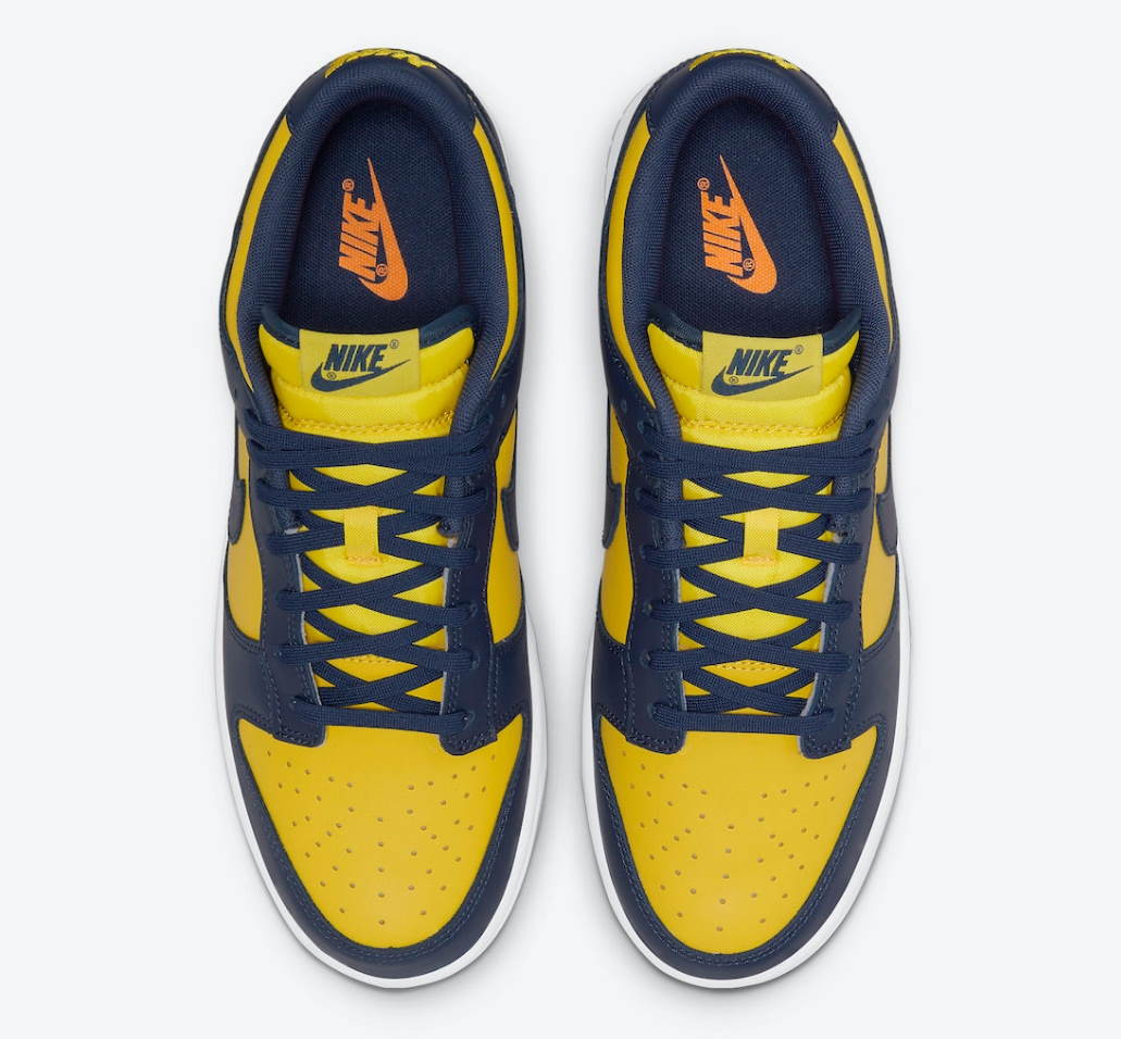 Nike Dunk Low 2021 'Michigan' предлагает версию с низким верхом одной из оригинальных расцветок силуэта «Be True to Your School», впервые выпущенных в 1985 году и ранее обновленных в 2020 году. Полностью кожаный верх представлен в богатой цветовой гамме Varsity Maize, оттенок с контрастными вставками Midnight Navy на логотипе Swoosh, а также на накладке в области передней части стопы и пятки. Низкий воротник и дышащий нейлоновый язычок с традиционным логотипом Nike обеспечивают комфорт.- Цвет: Varsity Maize/Midnight Navy/White