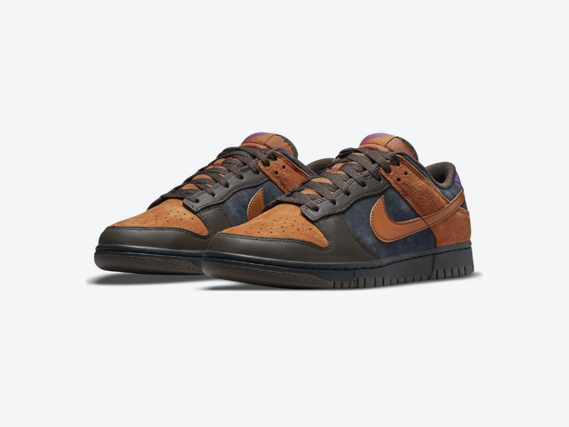 Кроссовки Nike Dunk Low Premium Cider одеты в цветовую гамму Off Noir, Cider, Dark Chocolate и Wild Berry, выполнены из высококачественной замши и кожи с акцентами Berry на язычке и пятке с логотипом бренда. Резиновая подошва шоколадно-коричневого цвета завершает дизайн.