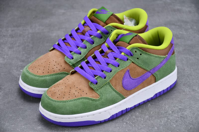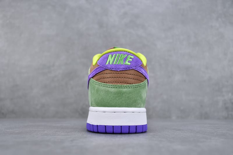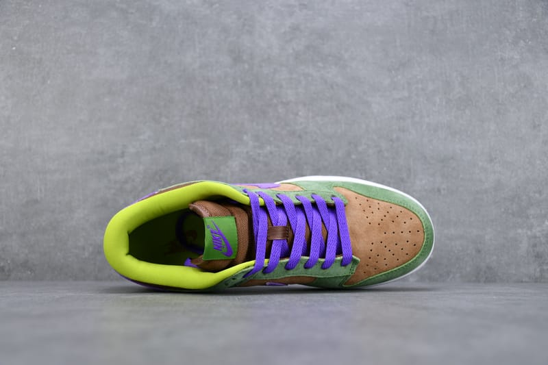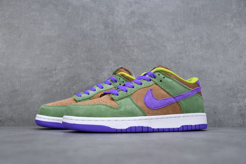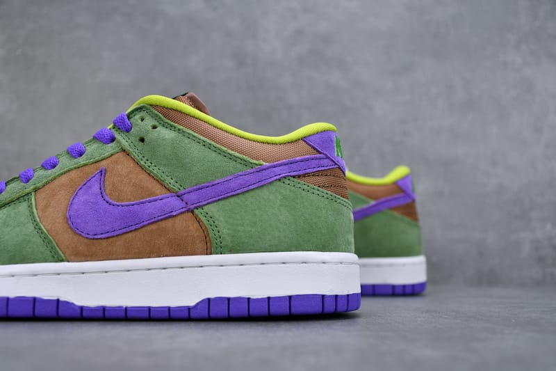 Nike Dunk Low SP «Veneer» 2020 года возвращает одну из оригинальных расцветок из CO.JP «Ugly Duckling Pack» 2001 года. Как и у предшественника, верх почти полностью выполнен из замши и свиной кожи с отделкой коричневого, зеленого и фиолетового оттенков. На воротнике и язычке есть дышащая сетка, украшенная традиционной тканой биркой Nike. Резиновая подошва кроссовок выделяется дополнительным акцентом фиолетового цвета. Ознакомьтесь с подробными фотографиями и закажите эту расцветку Nike Dunk Low SP Retro Veneer (2020) в розничных магазинах или в сервисе Slamdunk- Цвета: Veneer/Autumn Green/Deep Purple