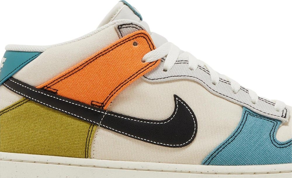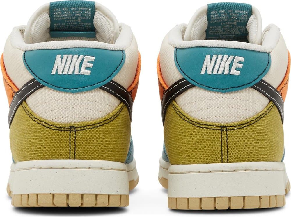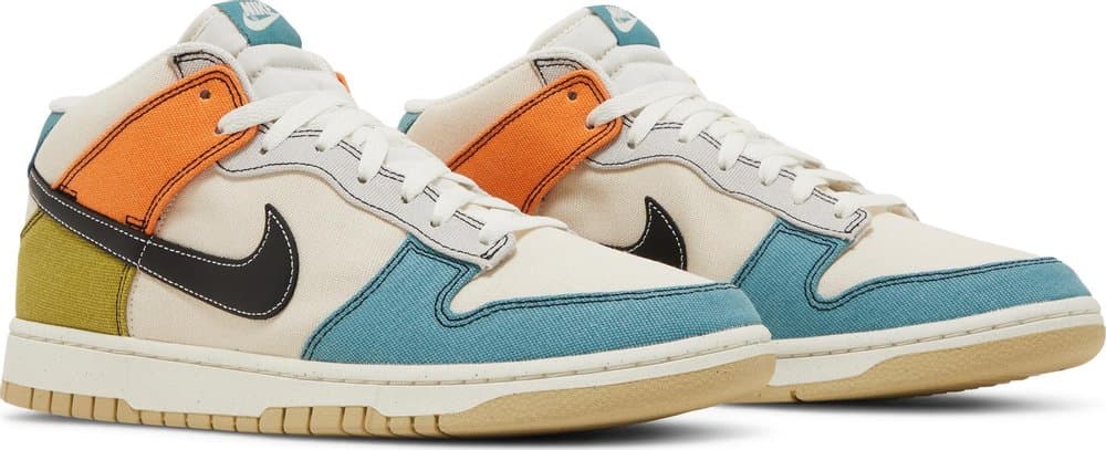 Nike Dunk Mid "Pale Ivory Multi-Color" - это обновленная версия классической баскетбольной обуви с мягкими оттенками и измененной конструкцией. Верх модели выполнен из канваса с белой основой и накладкой на пятке оранжевого и лаймово-зеленого цветов. Такой дизайн придает кроссовкам нежный и стильный вид. Фирменный логотип Swoosh выполнен из черной кожи с контрастной белой строчкой. Он добавляет кроссовкам элегантности и контраста. Акценты Mineral Teal расставлены на передней части стопы и кожаном язычке пятки с логотипом Nike. Это добавляет кроссовкам яркости и индивидуальности.
