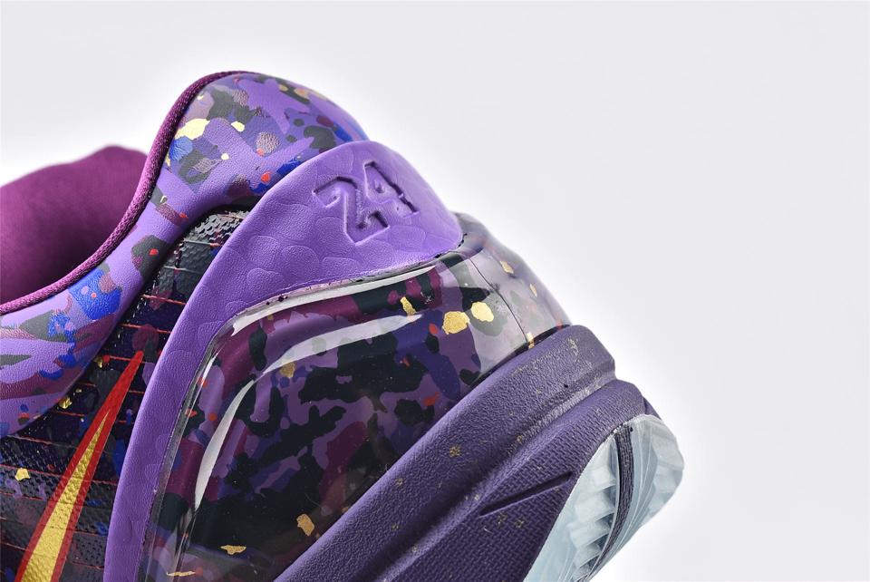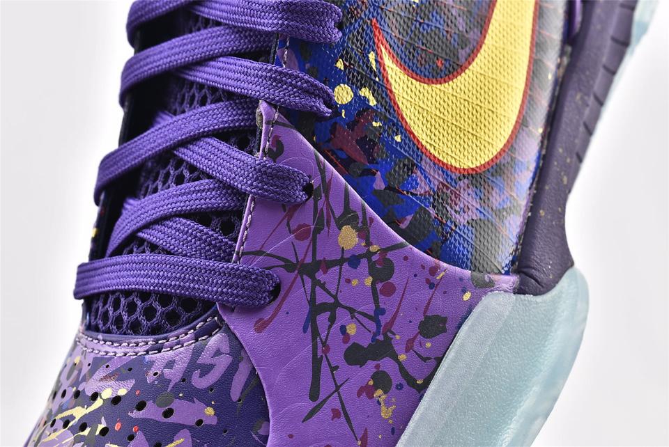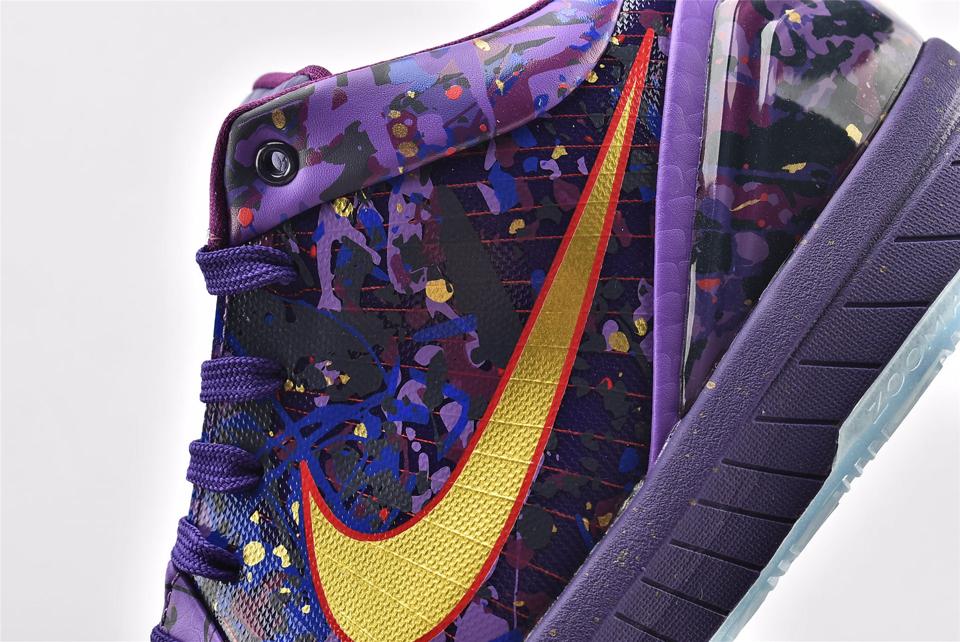 Заказать поиск кроссовок Nike Kobe 4 Prelude Finals MVP с бесплатной доставкой. Кроссовки Nike Kobe 4 Prelude Finals MVP - это первый ретро-релиз в декабре 2013 года для Nike Zoom Kobe 4. Модель выкрашена в пурпурную, золотую и фиолетовую ядовитую палитру, верхняя часть покрыта эстетическими "брызгами" краски. Кроссовки имеют перфорацию в носочной части, эмблему на язычке и подпись Kobe Bryant на пяточной стойке. Лунная пена и технология воздушной амортизации Zoom объединяются голубой подошвой с протектором.