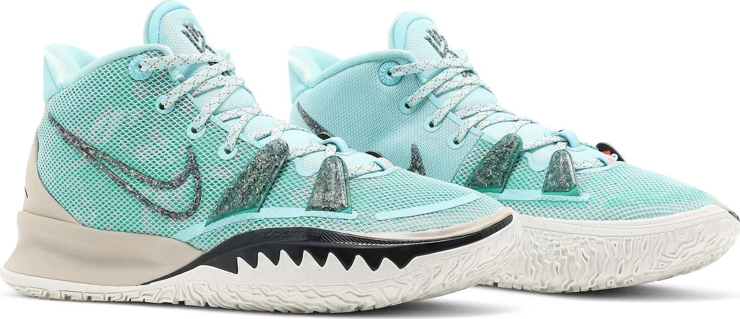 Kyrie 7 с верхом из сетки надежно фиксируют стопу, обеспечивая плотную комфортную посадку и помогая тебе обходить защитников на высокой скорости. Кроссовки Kyrie 7 обеспечивают технологичное сцепление на 360 градусов и контроль для молниеносной смены направления движения. Изогнутая и гибкая вставка Air Zoom Turbo в модели Kyrie 7 реагирует на любой бросок с ведения — от флоатеров до трехочковых со степ-бэком.- Цвета: Copa/Rattan/Roma Green/Dark Smoke Grey