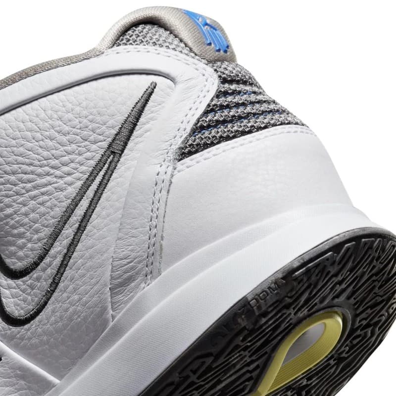 Nike Kyrie 8 Infinity EP White Light Marine представляет собой базовую расцветку восьмой фирменной обуви Кайри Ирвинга, с разноцветным сетчатым верхом, облегчающим вес и обеспечивающим дышащую поддержку. Контрастный цвет подчеркивает блок Air Zoom Turbo в передней части стопы, профиль которого обеспечивает повышенную отзывчивость и ощущение корта. Под стопой на фирменной резиновой подошве используется инновационный рисунок сцепления.- Цвета: White/Light Marine/Medium Blue/Iron Grey