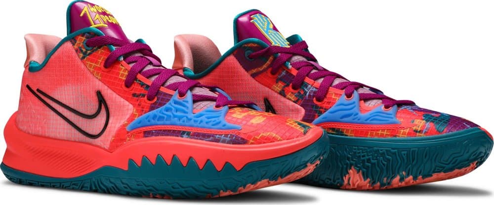 Кроссовки Nike Kyrie Low 4 EP 1 World 1 People - это яркие и стильные баскетбольные кроссовки, созданные для игроков всех уровней. Модель выполнена в насыщенной цветовой гамме, сочетающей в себе красный, фиолетовый, синий и черный цвета. Верх кроссовок изготовлен из сетчатого материала, обеспечивающего воздухопроницаемость и комфорт. Подошва выполнена из резины с разнонаправленным рисунком протектора, который обеспечивает хорошее сцепление с поверхностью.
