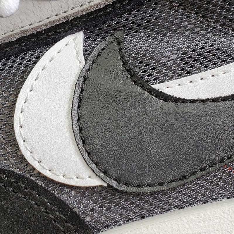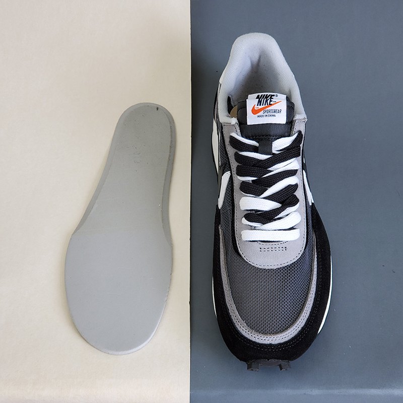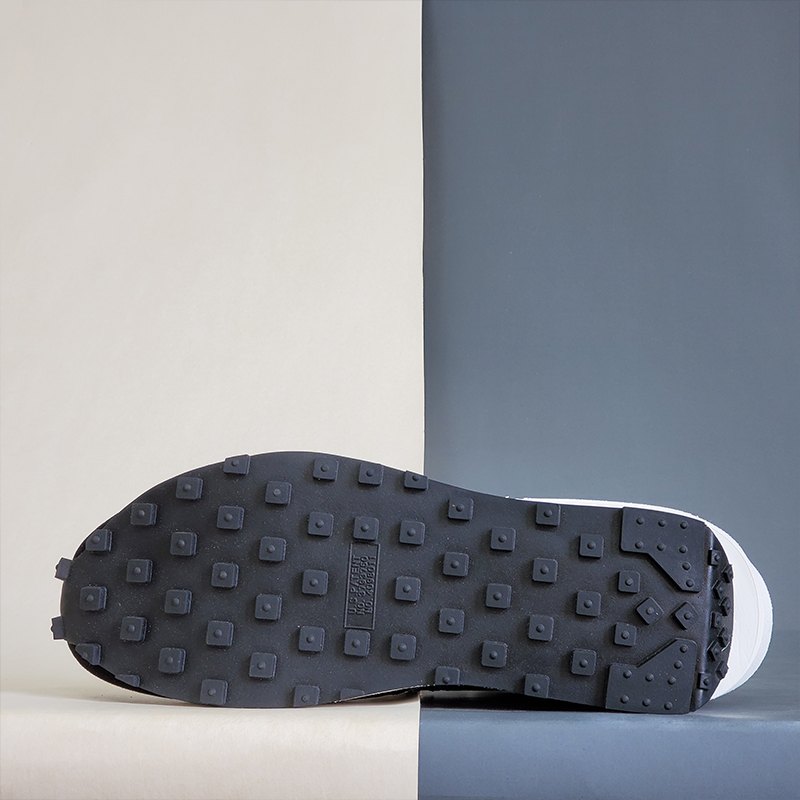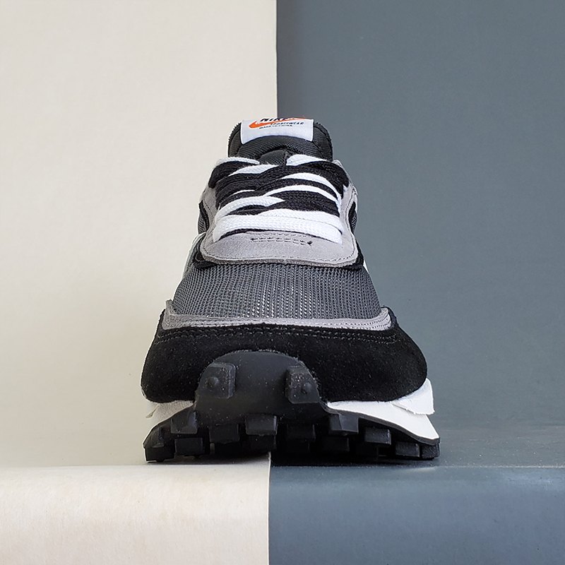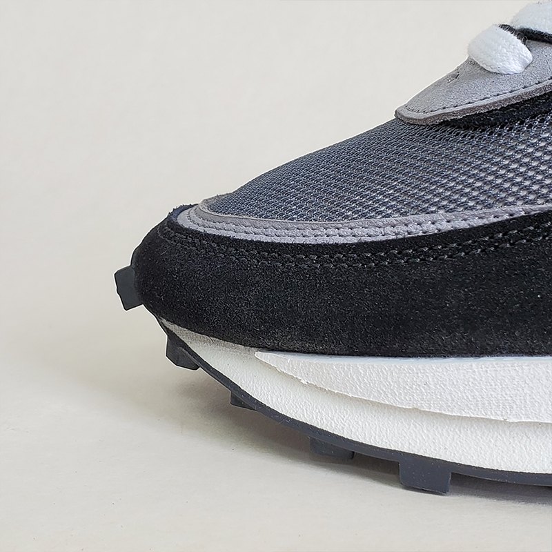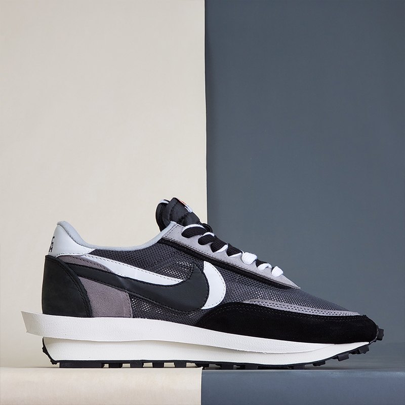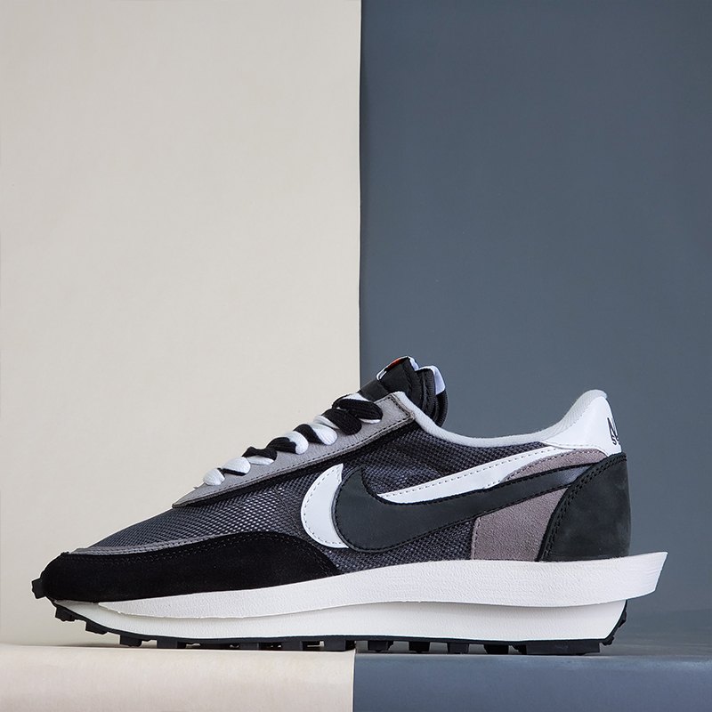 Sacai x LDWaffle, гибрид двух культовых бегунов Nike, представляет собой экспериментальный дизайн, типичный для провокационной эстетики японского модного бренда. Эта «черная» версия, показанная в сентябре 2019 года, выполнена в виде сетки с двухцветной замшей на носке, в оправе и прилавке. Понятию дуальности способствует кожа Swooshes, парные языки и кобрендинг на пятке. Двойная скульптурная мидсоль находится над традиционной резиновой вафельной подошвой.- Цвета: Black/Anthracite-White-Gunsmoke