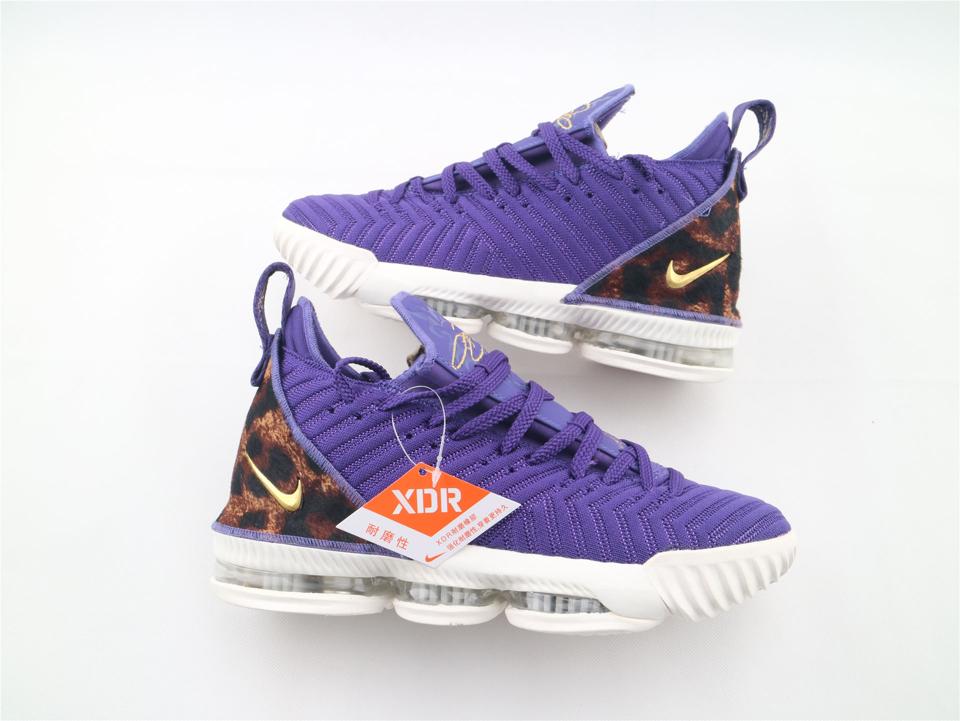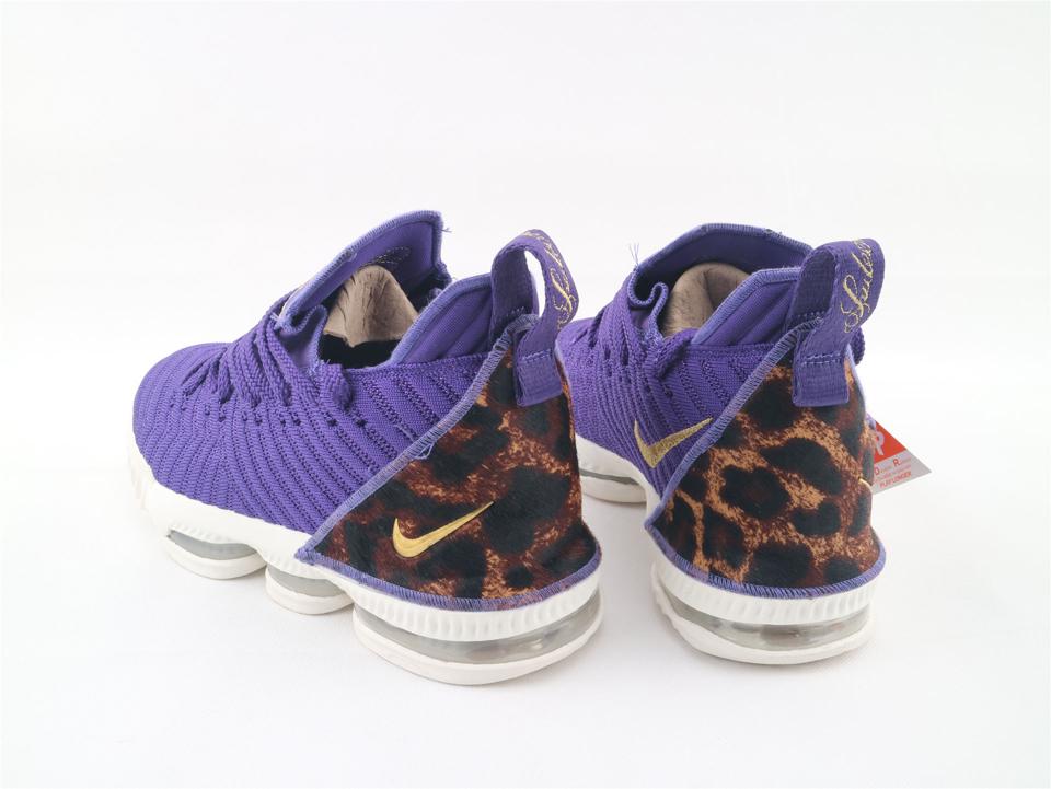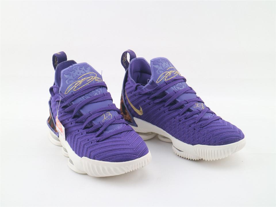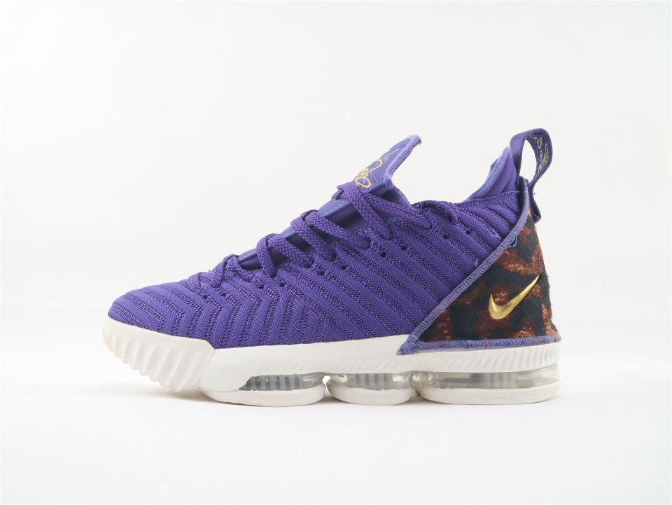 Модель Nike LeBron 16 King Court Purple выпущена в октябре 2018 года. Модель имеет верхнюю часть Court Purple BattleKnit с перфорацией вдоль системы шнуровки для воздухопроницаемости. На кроссовках также имеется пяточная часть с принтом гепарда, украшенный драгоценными камнями Swoosh и открытый Zoom Air во всю длину в мидсоли.- Цвета: Придворный пурпур, Металлик-золотой