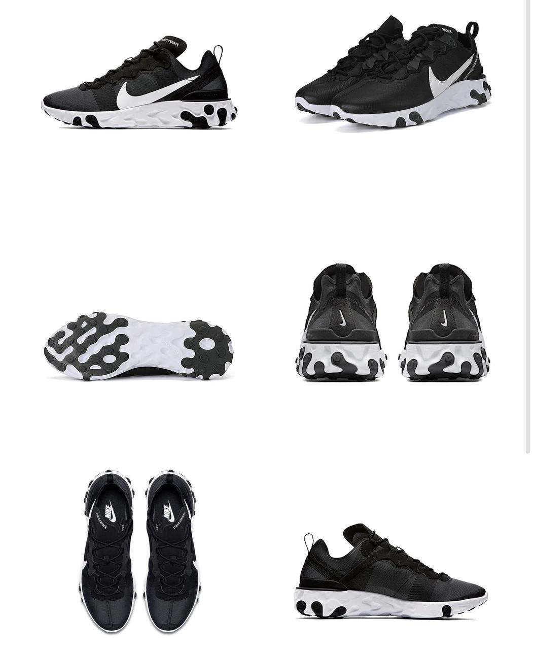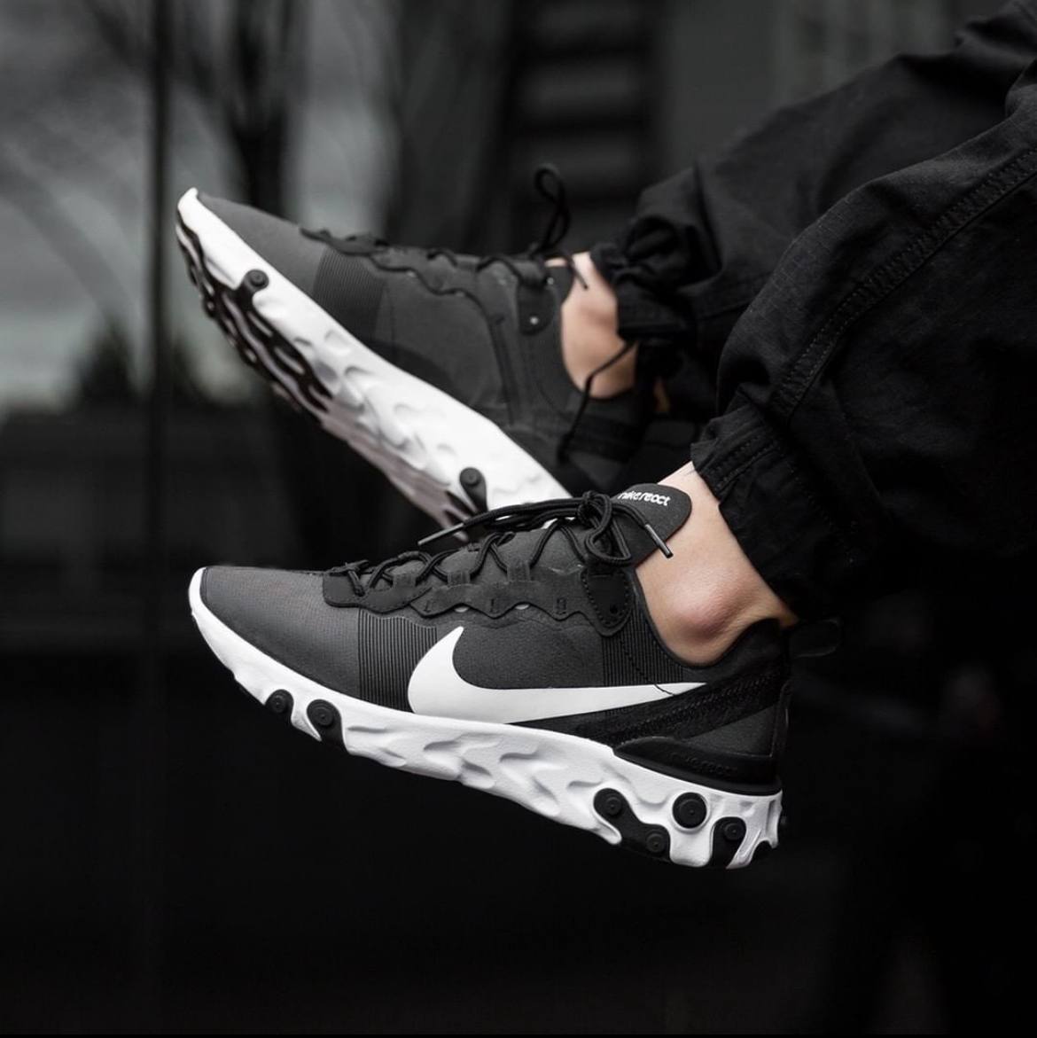 Выпущенные осенью 2018 года кроссовки Nike React Element 55 получили чистый и минималистичный дизайн в модели Black White. Основанные на силуэте React Element 87, кроссовки Element 55 меняют эстетику: вместо полупрозрачного верха Element 87 они имеют сплошной непрозрачный верх. В этой модели кроссовки сохранили удобную мягкую подошву, а также тонкие полоски на текстильном выцветшем черном верхе и четкий белый контраст на подошве и Swoosh.- Цвета: Black/White