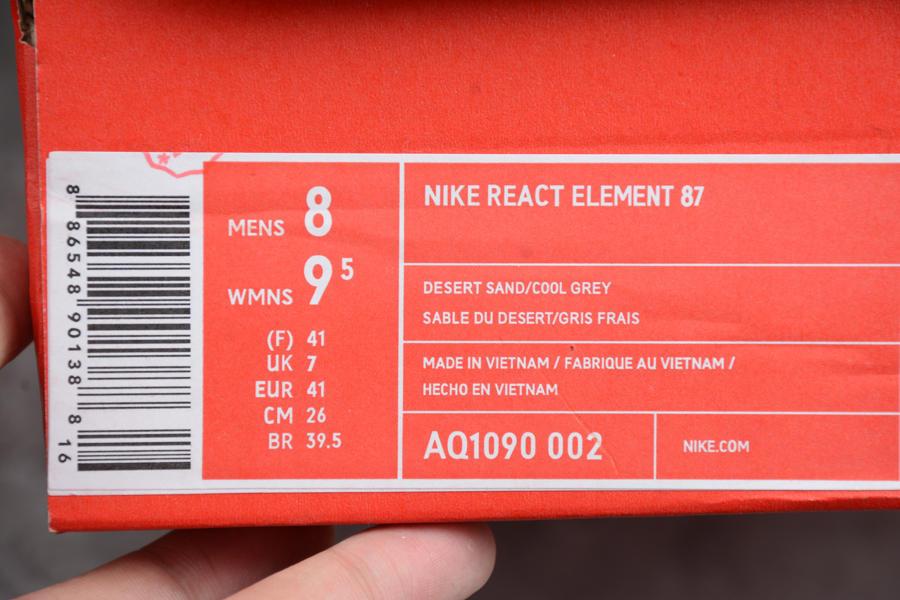Модель React Element 87 появилась в июле 2018, через пару месяцев Nike выпустил очередной релиз Desert Sand в сочетании цветов на тему пустыни, такой же горячей, как сахара. Nike React Element 87 Desert Sand дропнули в августе 2018 за 160$.- Цвета: Пустынный песок, Прохладный серый - дымчатый сиреневый