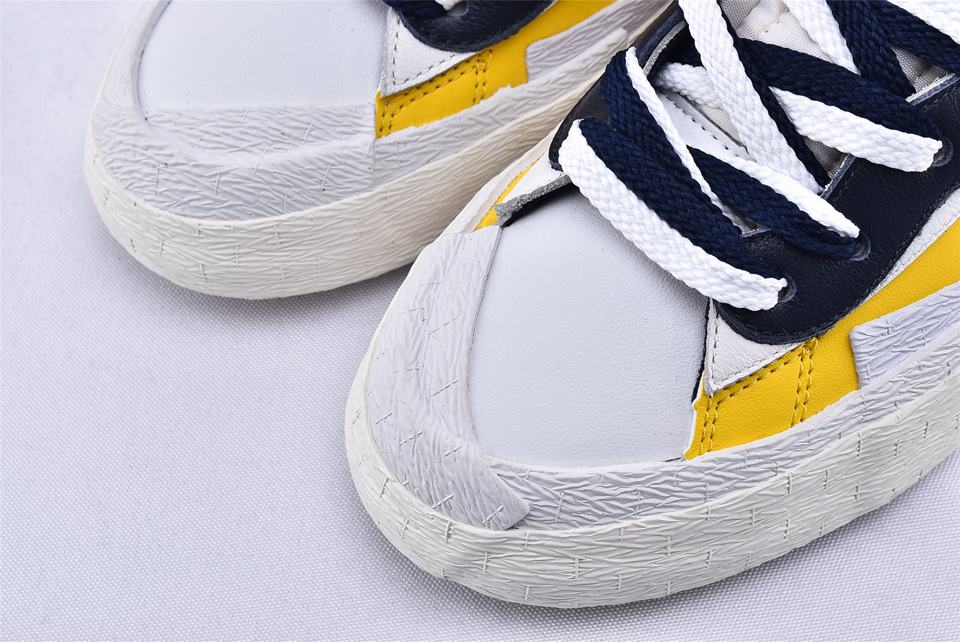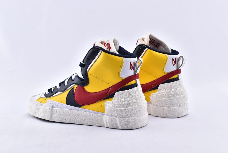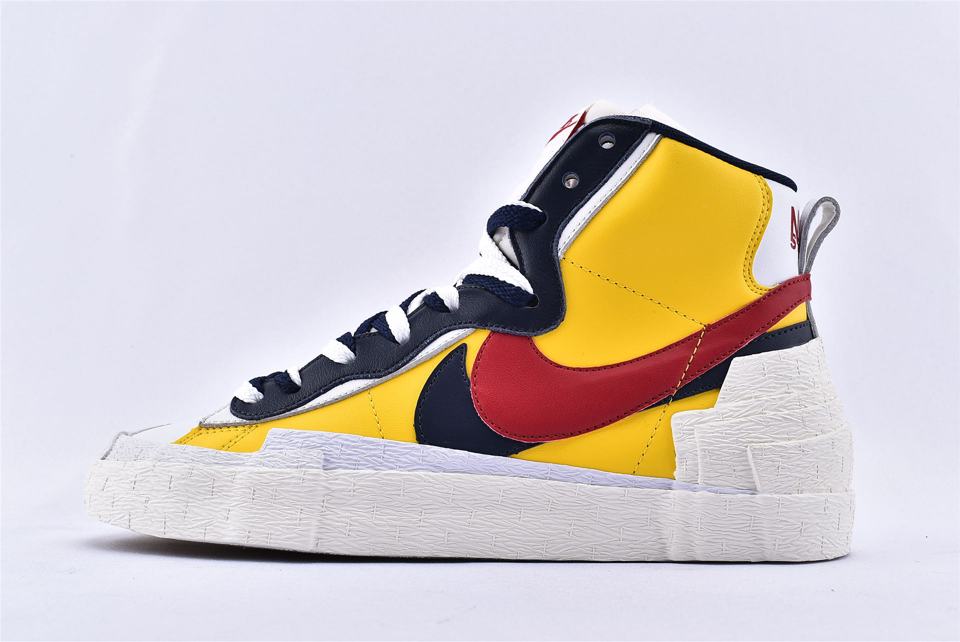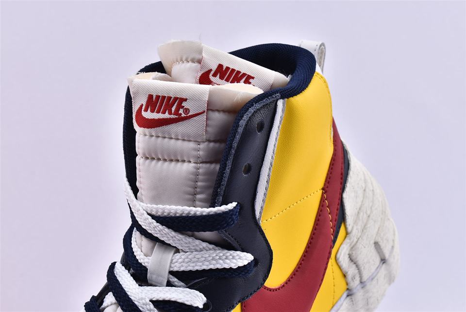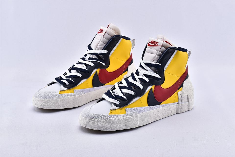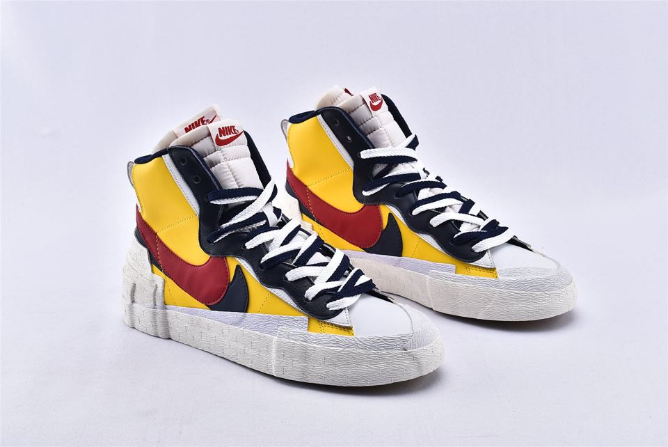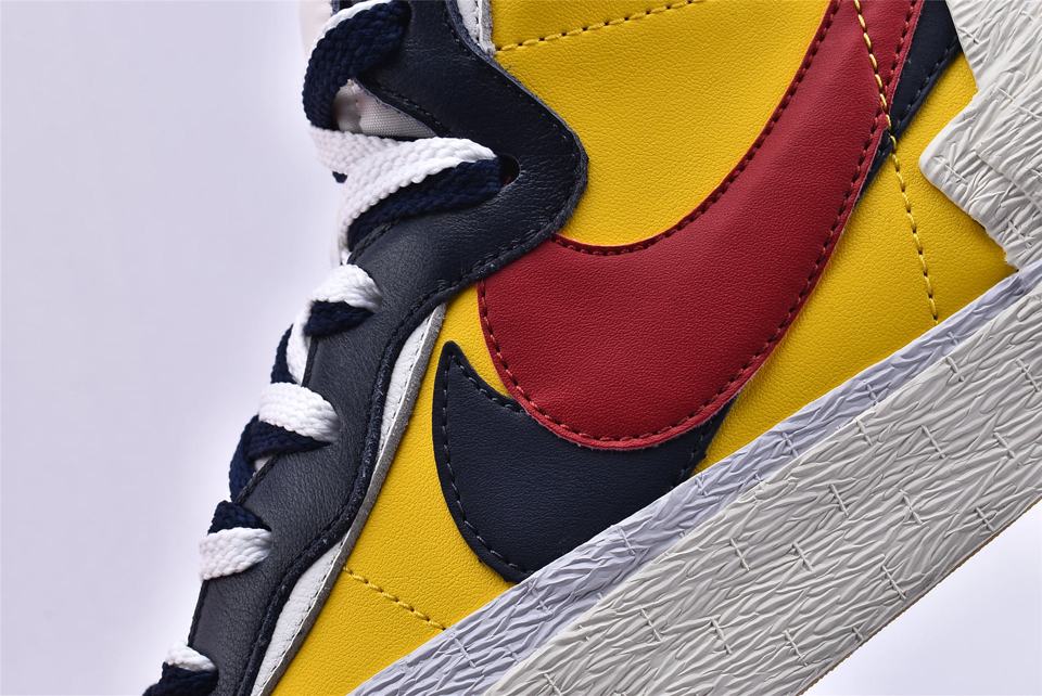 Кроссовки Nike Sacai x Blazer Mid Maize Navy, представленные на Парижской неделе моды во время показа Sacai Spring 2019 и соединяют культовое наследие Nike с уникальным стилем Sacai. Вдохновленная гибридизацией, эта модель сочетает в себе яркую палитру цветов и элементы Nike Blazer, а также Dunk High, которые можно увидеть на панели волнистой системы шнуровки. Модель также имеет кожаный верх, который удваивается на ключевых элементах, таким образом получается слоистый язычок, логотип и высокая увеличенная пяточная часть.