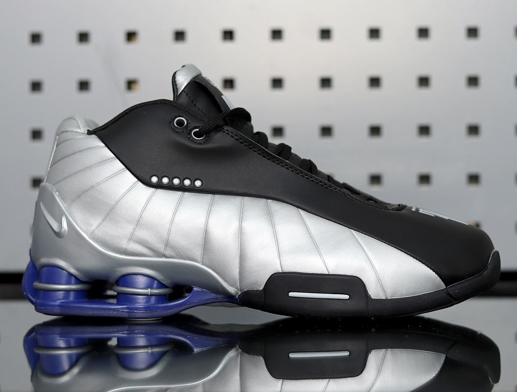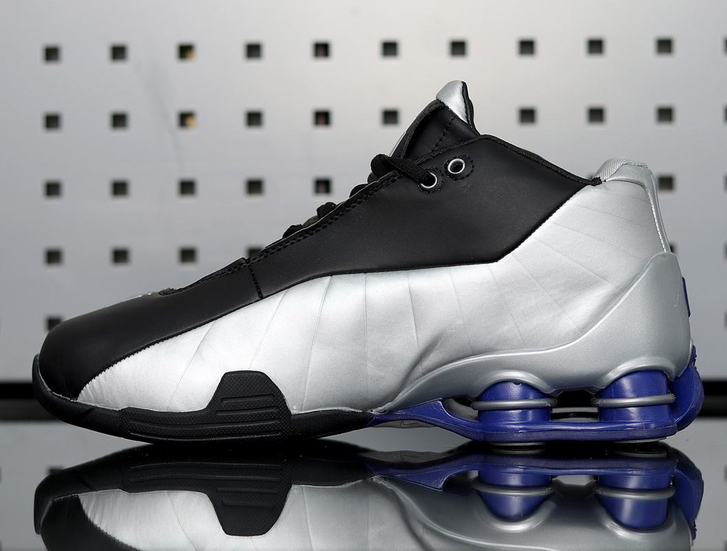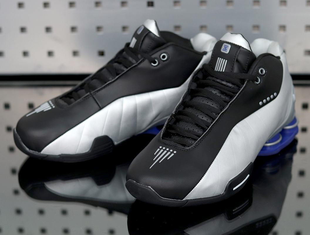 Модель Nike Shox BB4 Black Silver Lapis была впервые замечена на Картере Винсе во время Олимпийских игр в 2000 году в Сиднее, кроссовки с технологией Shox были рассчитаны на максимально удобную и универсальную эксплуатацию. С цветным сочетанием серебристого, черного и фиолетового оттенков, соответствующими его униформе команды Торонто Рэпторс, Картер продолжал использовать их на твердой древесине площадки NBA.- Цвета: Black/Metallic Silver/Lapis