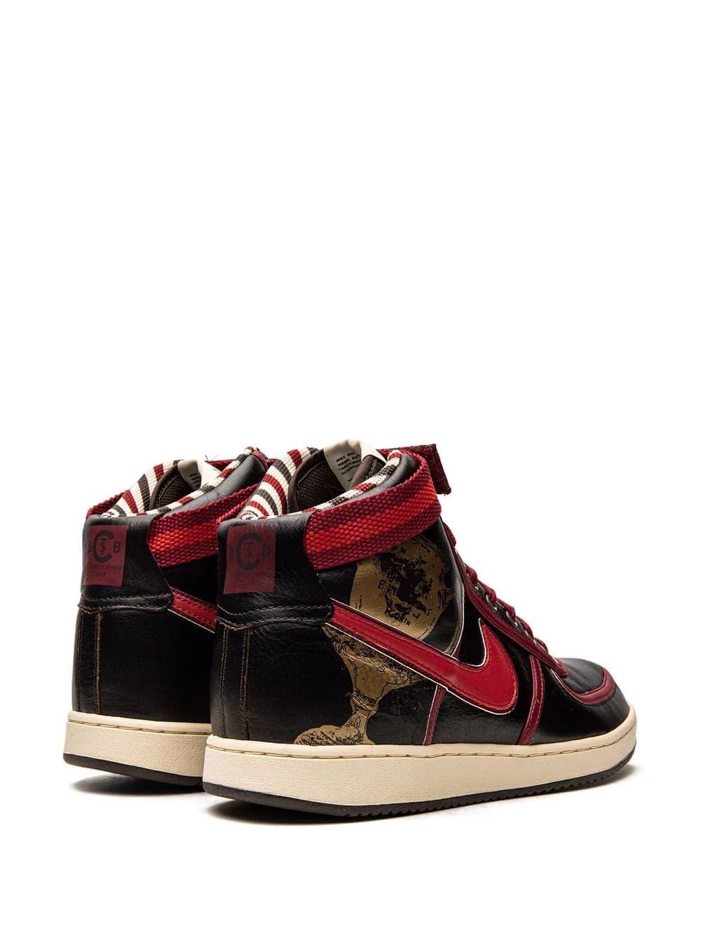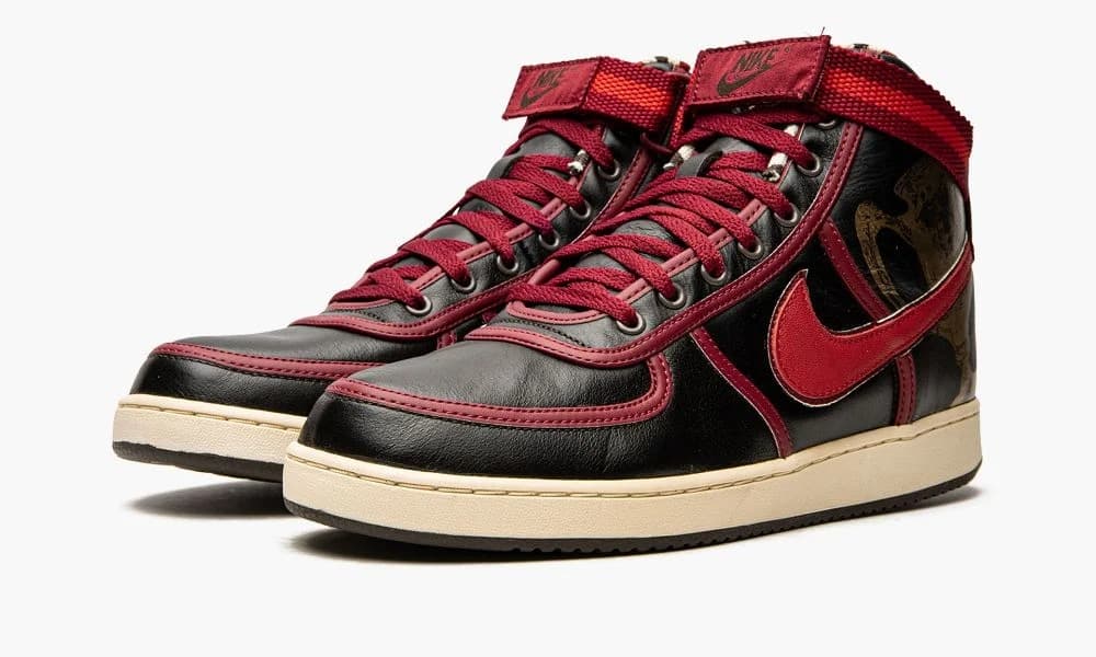 Отдавая дань уважения гарлемскому клубу Святого Кристофера и эпохе до интеграции лиги в НБА, Vandal High Premium Bfive чествует афроамериканских звезд того времени. С черным кожаным верхом и узнаваемым красным ремешком на липучке на щиколотке, классический силуэт Nike дополнен мерцающим золотым изображением трофея на пятке. Красная окантовка по всему периметру создает контрастную вибрацию, а текстурированная резиновая подошва улучшает сцепление на площадке.