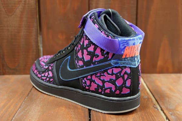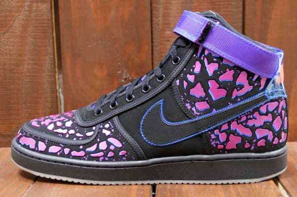 Кроссовки Vandal Premium QS "Area 72", выпущенные в связи с коллекцией Area 72 от Nike к Игре всех звезд НБА 2013 года, имеют черную основу из нубука, украшенную розовым металлическим межгалактическим узором. Контрастные фиолетовые язычок и ремешок на лодыжке, светящаяся в темноте подошва и специальная коробка с надписью "Area 72" и газетным вкладышем завершают это уникальное издание.- Цвета: Black/Black-Ttl Crmsn-Vlt Frc