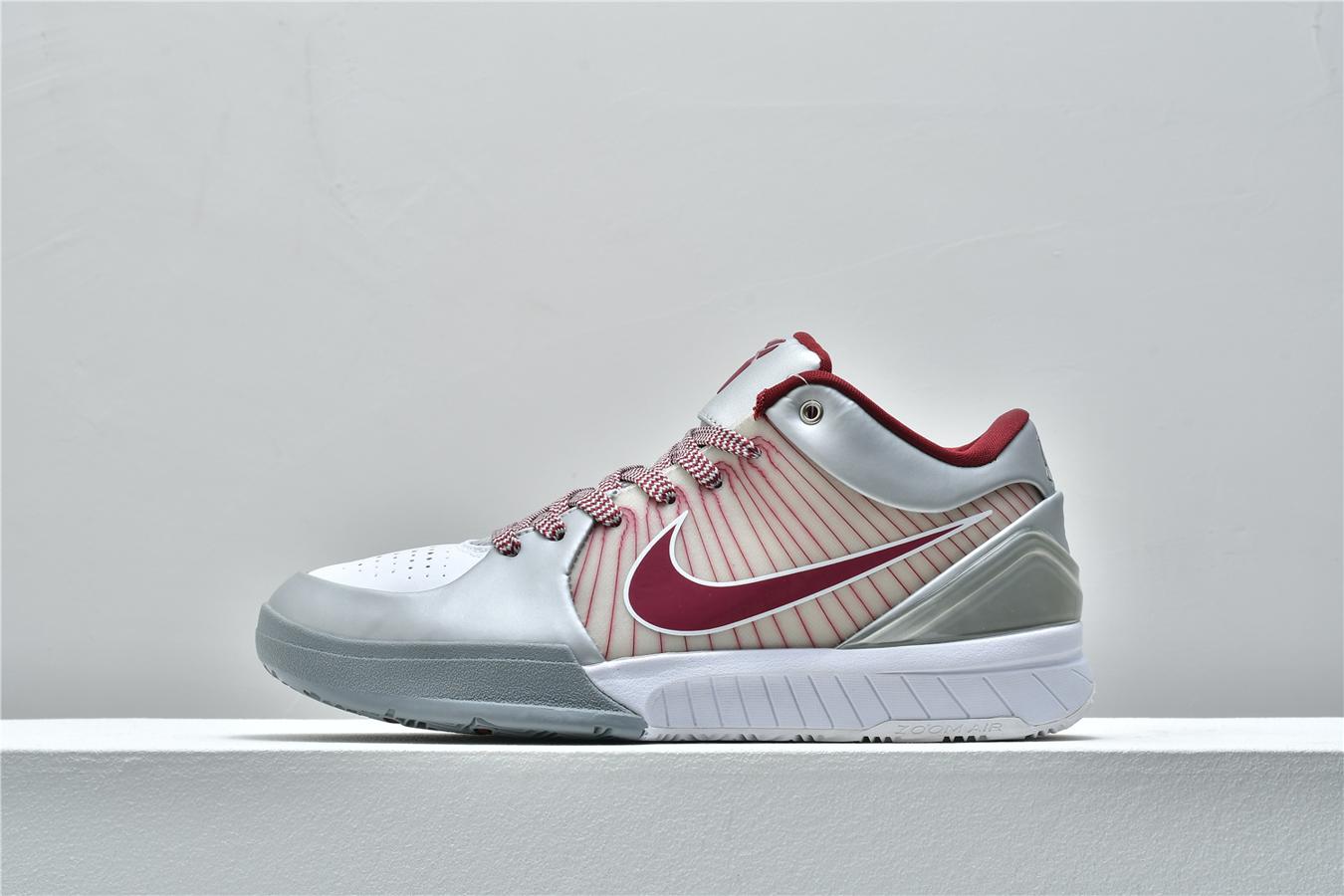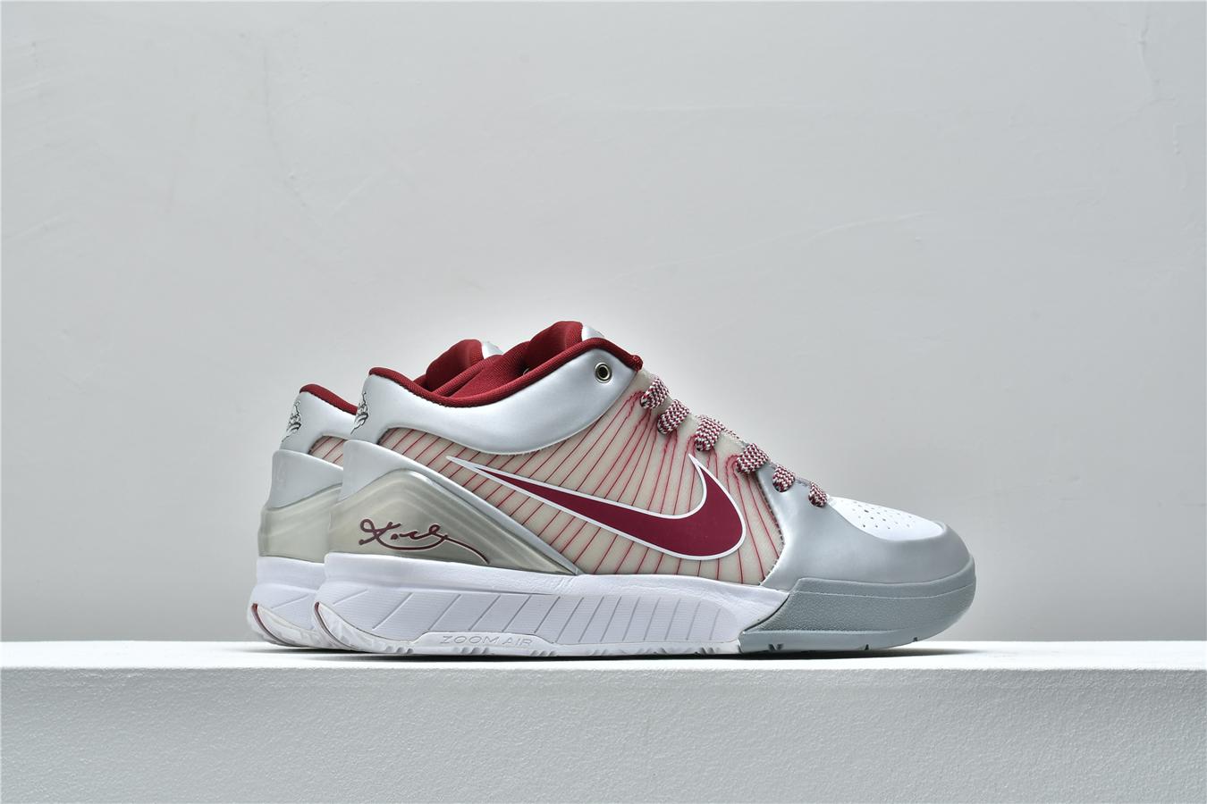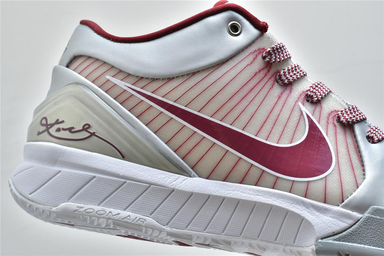 Кроссовки Nike Zoom Kobe 4 Lower Merion Aces выпущены в 2019 году в комбинации перламутрового серебра и насыщенного бордового цветов на синтетическом, термоформованном верхе. Модель  имеет перфорацию в носочной части, бордовую эмблему на язычке и подпись Kobe Bryant на пяточной стойке. Лунная пена и технология воздушной амортизации Zoom объединяются  подошвой с протектором.