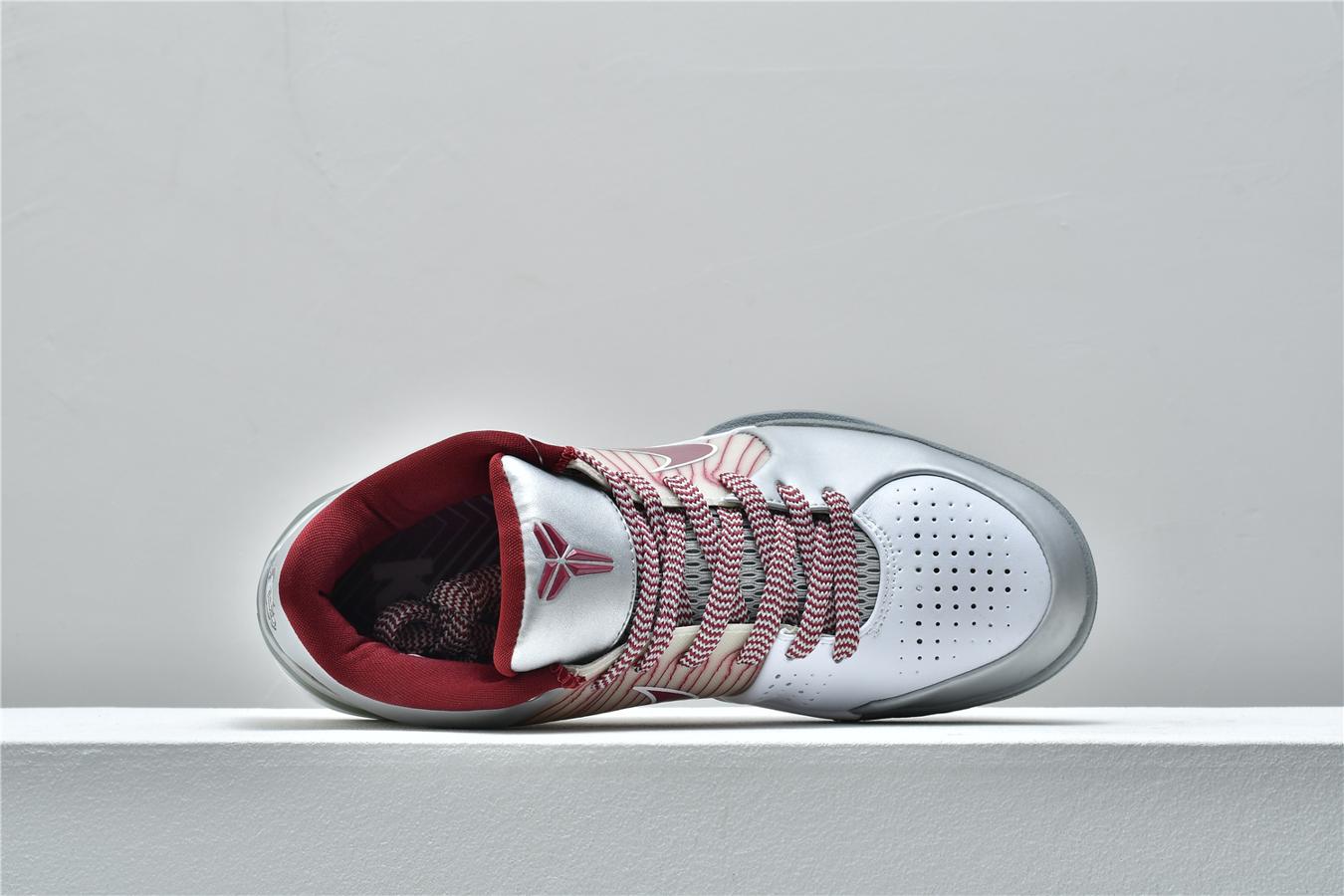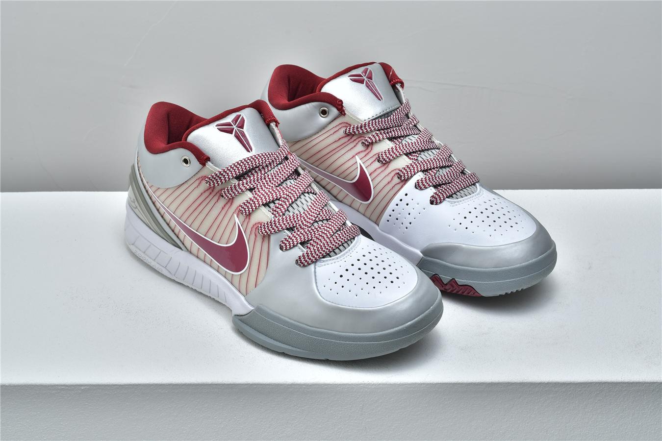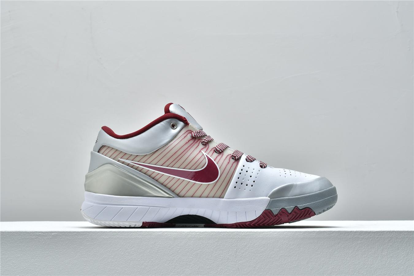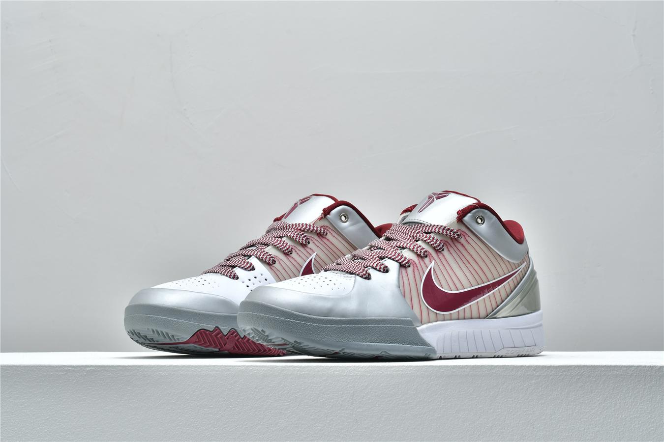 Кроссовки Nike Zoom Kobe 4 Lower Merion Aces выпущены в 2019 году в комбинации перламутрового серебра и насыщенного бордового цветов на синтетическом, термоформованном верхе. Модель  имеет перфорацию в носочной части, бордовую эмблему на язычке и подпись Kobe Bryant на пяточной стойке. Лунная пена и технология воздушной амортизации Zoom объединяются  подошвой с протектором.