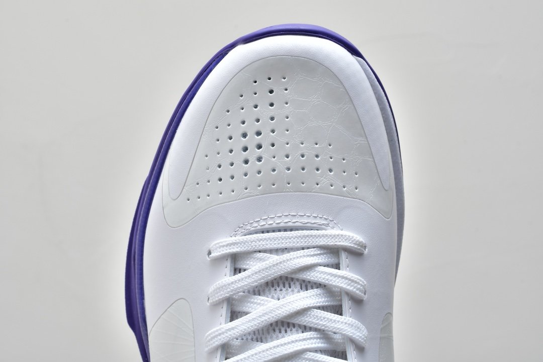 Nike Kobe 5 Lakers представляет собой фирменный силуэт Коби Брайанта, подчеркнутый цветами команды из Лос-Анджелеса, в которой Коби играл на протяжении своей 20-ти летней карьеры в НБА. Чрезвычайно легкая конструкция усилена за счет применения термосваренных накладок и стратегически размещенных кабелей Flywire. Филон усиливает резиновую подошву, укрепленную углеродным волокном для жесткости средней части стопы.- Цвета: White/Dl Sol-Ntrl Gry-Vrsty Prp