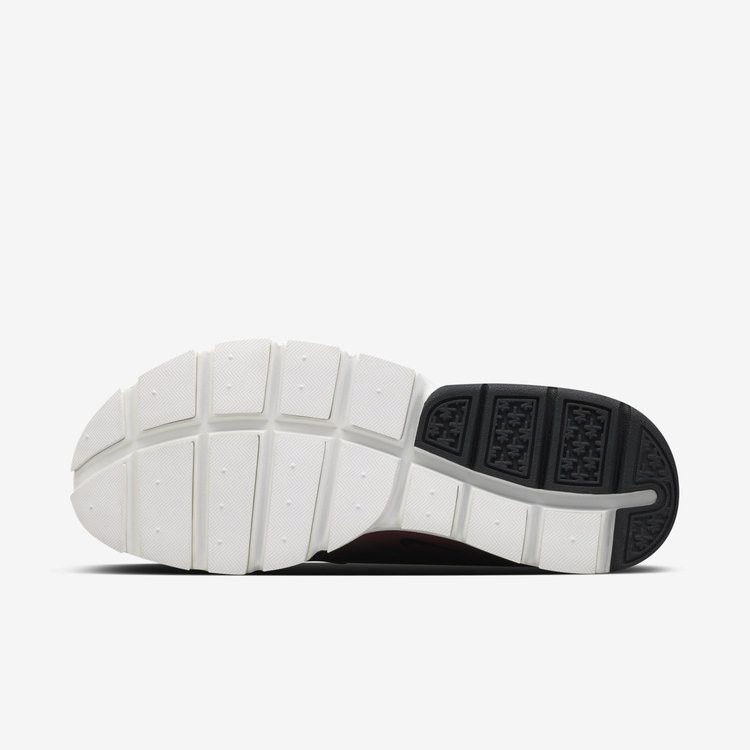 Инновационная ткань Tech Fleece от Nike была применена в Sock Dart для этой улучшенной версии кроссовок. Носовая часть из Tech Fleece сочетается с неопреновой конструкцией на воротнике, а полупрозрачный ремешок обеспечивает устойчивость. Верх кроссовок выполнен в черном, малберри и ночном маруне и имеет белую мягкую подошву.