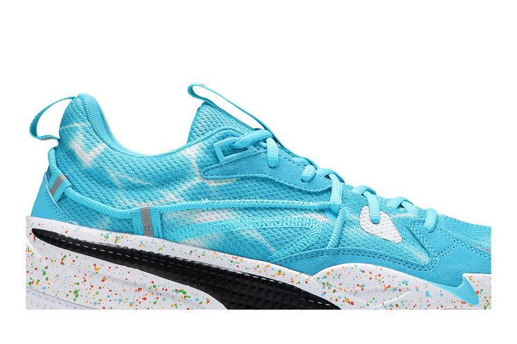 Модель Nintendo x J.Cole x PUMA RS-Dreamer "Super Mario Sunshine" взята из капсульной коллекции, посвященной 35-летию франшизы Super Mario. Тропическая природа острова Дельфино вдохновила на создание этой яркой модели фирменных кроссовок Джей Коула. Верх кроссовок выполнен из текстиля водянисто-голубого цвета, а пятки украшены пятками со светящимися спрайтами. Многоцветные крапинки покрывают промежуточную подошву ProFoam, а в пятке используется пена RS-Foam для превосходной защиты от ударов.
